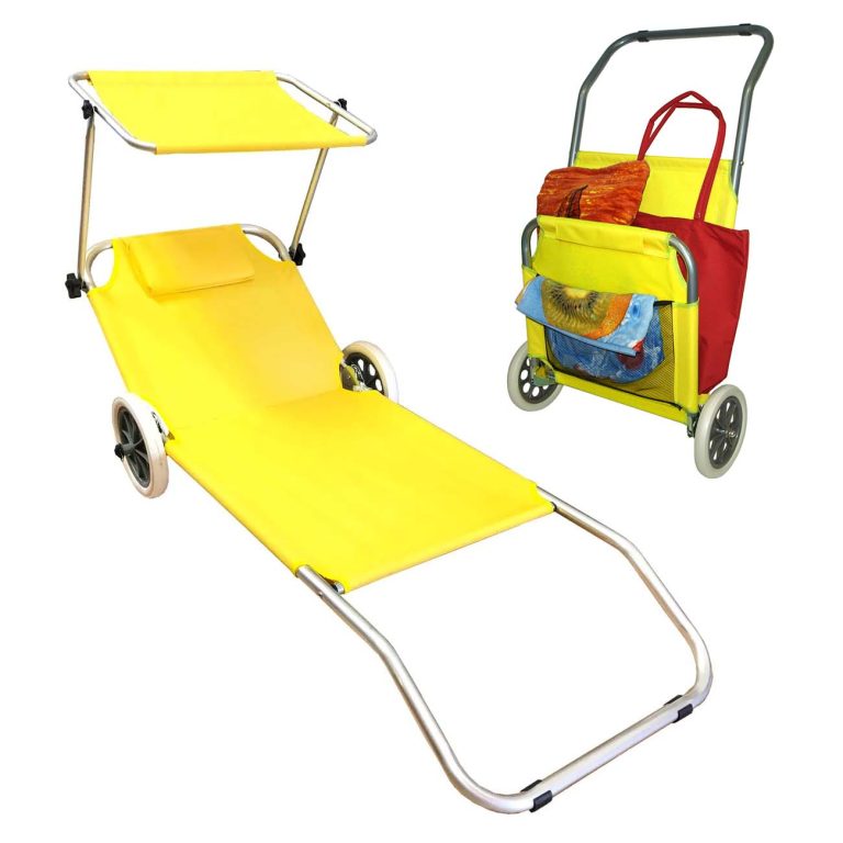 Vrtna ležaljka za sunčanje, 150x65x15cm, s krovom i točkovima, žuta