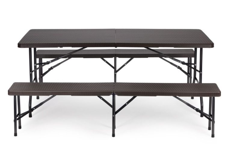 Sklopivi set sto180cm sa 2 klupe ratan brown