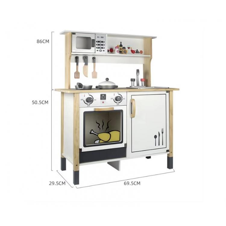 Otkrijte ultimativno iskustvo igre uz našu veliku drvenu kuhinju za devojčice! Izrađena s pažnjom na detalje, ova stabilna i elegantna kuhinja osmišljena je da inspiriše sate maštovite zabave. Od realističnog šporeta i rerne do sudopere i prostora za odlaganje, svaki element podstiče kreativnost, igru uloga i socijalnu interakciju. Savršena za male kuvarice, ova kuhinja dolazi sa preslatkim dodacima i lako se otvara, čineći je divnim dodatkom svakoj dečijoj sobi. Napravljena od visokokvalitetnog drveta, dugotrajna je i pruža bezbednu, ekološki prihvatljivu igru. Gledajte kako oživljavaju kulinarski snovi vašeg deteta! Dolazi u setu sa pratecim delovima za kuhinji (prikazano na slici): drvene lopatice, metalne posude…… Otvaraju se fioke ispod sudopera, rerne i mikrotalasne Kuhinja je dimenzija 70 X 30 X 85cm Starosna grupa:0 do 24 meseca, 2 do 4 godine, 5 do 7 godina, 8 do 13 godina, 14 godina i više Tip:Komplet kuhinjskih igračaka Materijal:Drvo Veličina proizvoda:70 X 30 X 85cm Težina proizvoda:9,5 kg Veličina pakovanja:62.5X34X12 cm Certification: ASTM,CPC,CPSIA,EN71,CE,FSC,BSCI