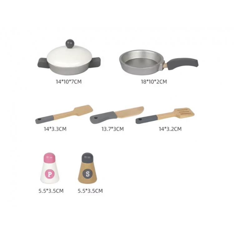 KINDER HOME Dečiji drveni set za čaj i kafu sa dodacima belo-sivi