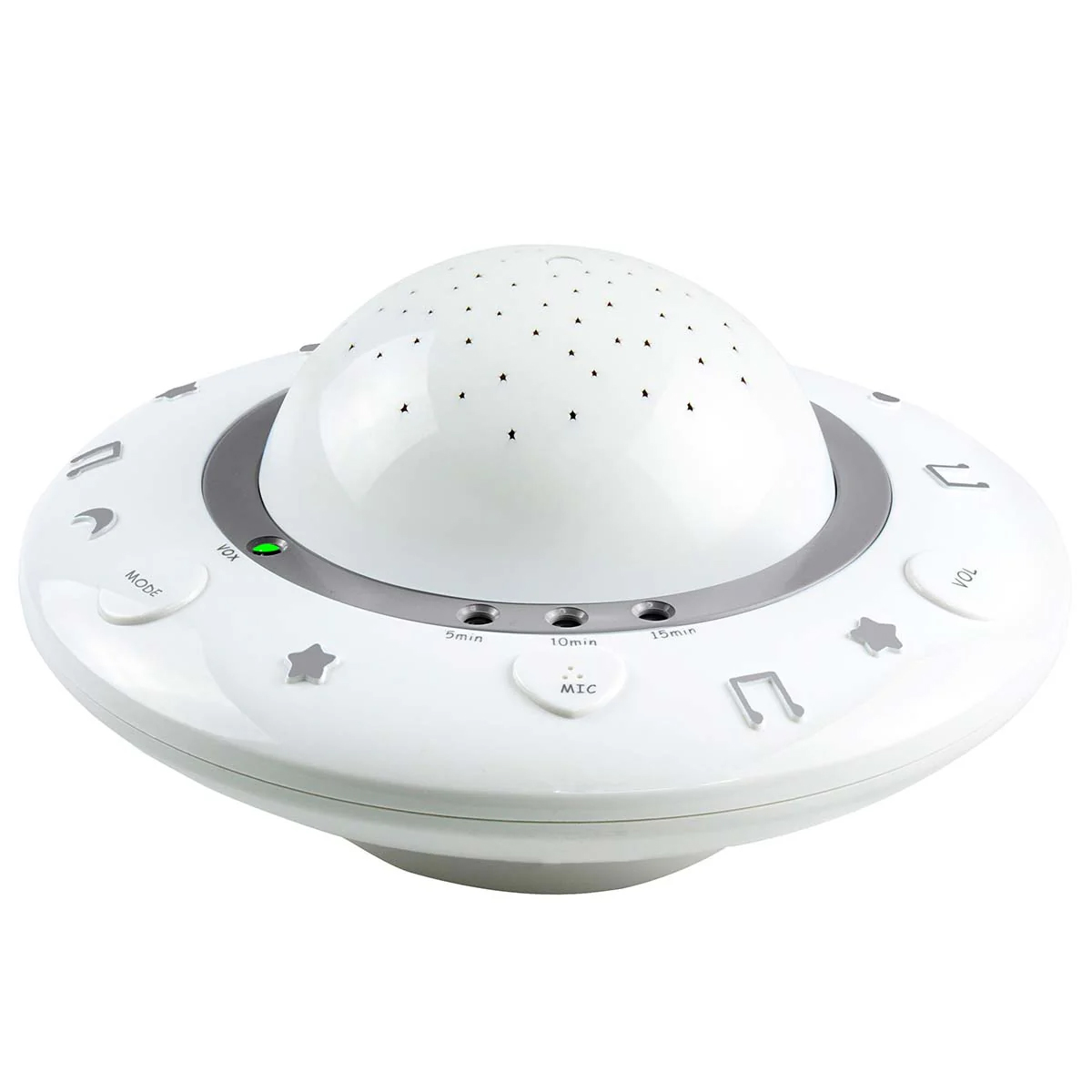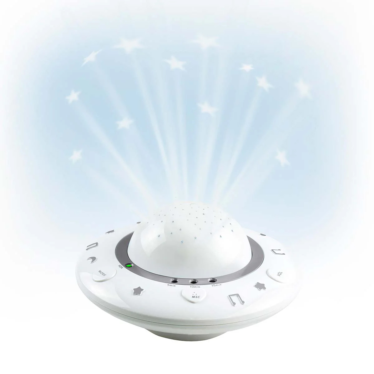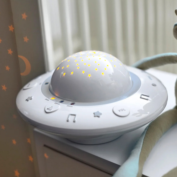 Kao i sva mala deca, i vaša beba je očarana slikama i zvukovima – uz blagu muziku i lepe projekcije oseća se smireno i sigurno. Alecto BC-125GS je elegantan projektor i umirivač za spavanje, koji projektuje šarene i nežne slike na plafon bebine sobe, dok u pozadini sviraju tihe uspavanke. Uspavljivanje tako postaje prijatna i redovna rutina