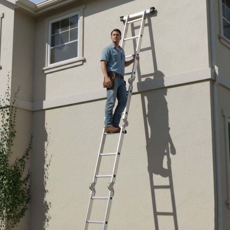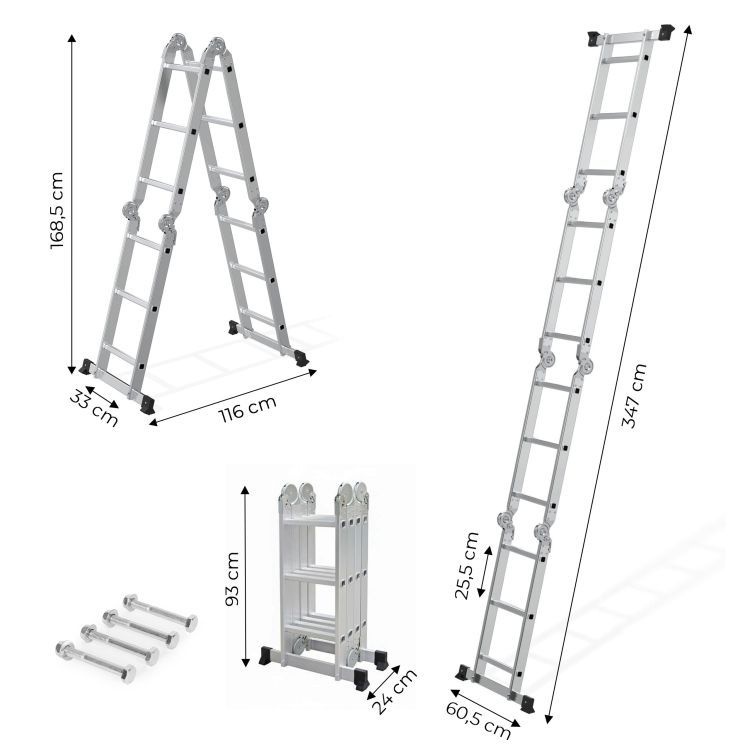 Aluminijumske višenamenske merdevine 4×3, sa šarkama, sklopive, nosivost 150 kg, ModernHome