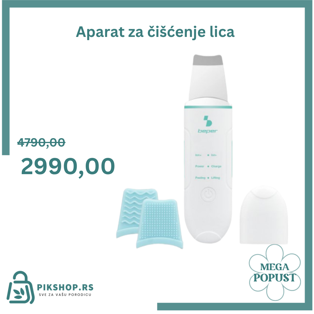 Pružite svojoj koži tretman kao iz salona, kod kuće, uz Beper P302VIS003 – ultrazvučni aparat za čišćenje lica koji kombinuje piling, masažu i ionsku funkciju. Dizajniran je da nežno ukloni mrtve ćelije, masnoću i mitesere, poboljša tonus i omogućava bolju apsorpciju vaših seruma i krema.