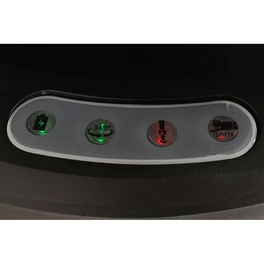 Svetlosni indikatori za ispravnu montažu sedišta i kod rotacije sedišta od 360 stepeni a rotira se uz pomoć jednog dodira prstom