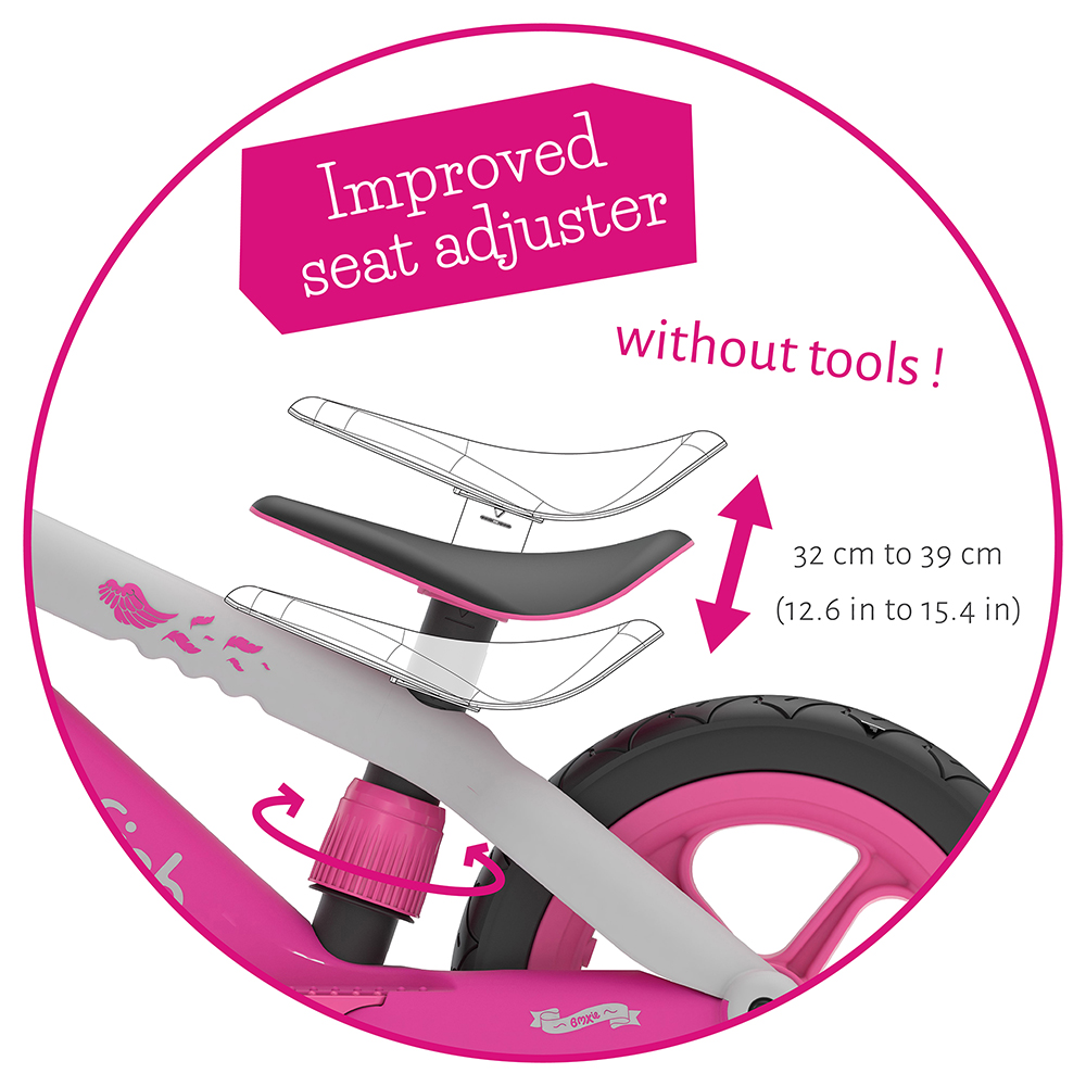 Chillafish BMXie2 balans bicikl je verovatno najkul balans bicikl na svetu. Sada sa integrisanim osloncem za noge i kočnicom za učenje kočenja i učenje kul trikova. Pravi BMX ram bicikla sa prevelikim cevima čini vožnju i klizanje veoma zabavnim. BMXie2 je napravljen od ojačane plastike i stoga je veoma lagan (3,6 kg), što ga čini veoma lakim za nošenje, kako za vaše dete, tako i za vas kao roditelja. Bezvazdušne gume RubberSkin od 12 inča ne samo da pružaju savršeno prianjanje, već ih više ne morate ni naduvati. Od sada, postoji samo zabava! Sedište BMXie2 se podešava bez alata od 12,6-16,1 inča / 32-41 cm. Da li je vaše sedište previsoko ili prenisko? Samo okrenite, povucite i zaključajte – jednostavno je! Prednja registarska tablica je odvojiva i dolazi sa raznim nalepnicama za kul prilagođavanje. Specifikacije: . Preporučena starost dece: 2-5 godina. .