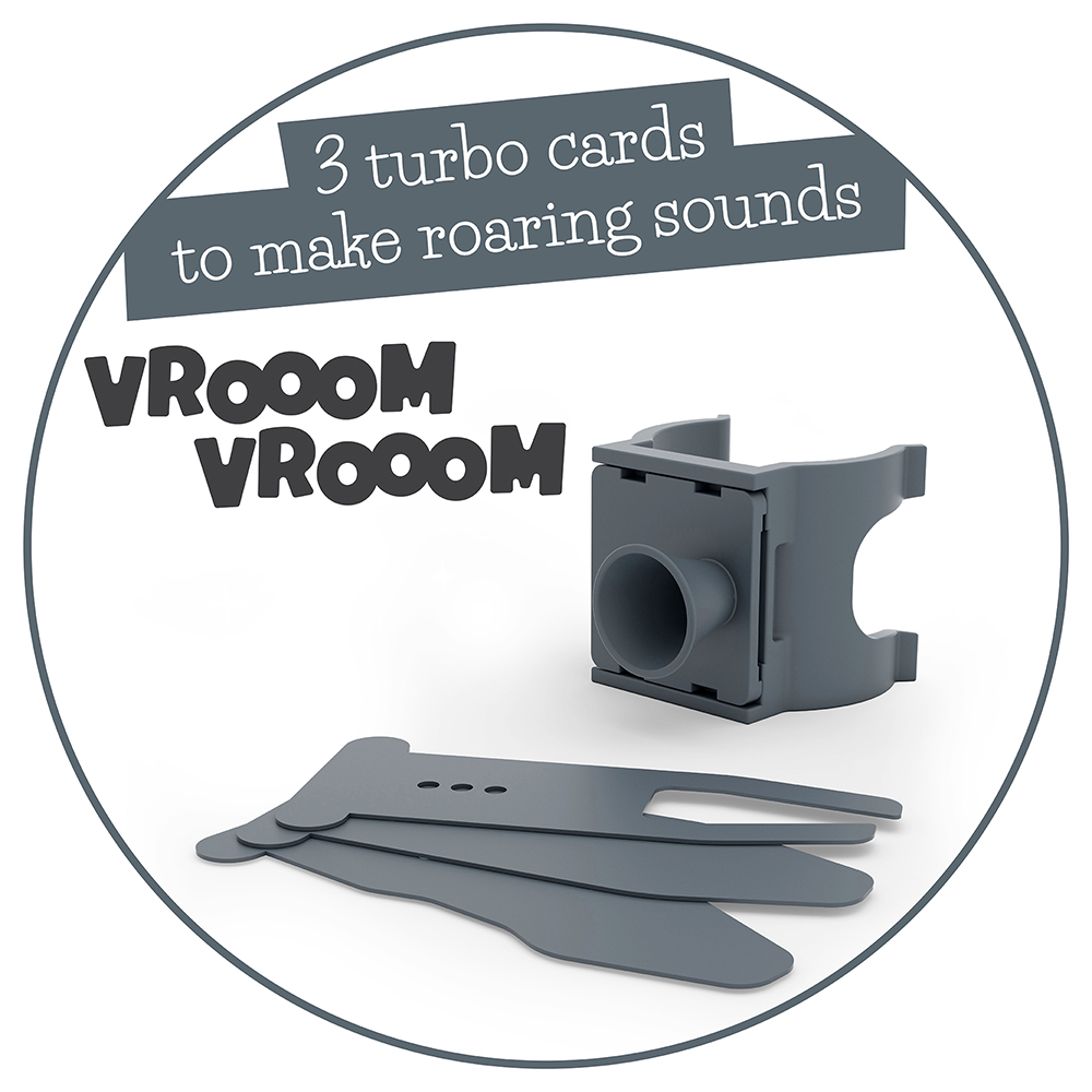 Chillafish BMXie Vrooom uzbuđuje decu dok uče više veština. BMXie Vrooom je višenamenski trenažer za ravnotežu i sada dolazi sa zvučnim „turbo karticama“. Učenje ravnoteže na biciklu za ravnotežu postaje još bolje: umetnite Turbo kartice da biste napravili prave zvuke tutnjave motora na prednjoj viljušci tokom vožnje – VROOM VROOOM! Turbo kartice imaju različita podešavanja za podešavanje nivoa zvuka. Odlično je za pomoć deci da razviju svoje senzorne i fine motoričke veštine. Kao da voze pravi motocikl, posebno sa štitnicima za ruke koji štite ruke i čine da izgledate kao šef.