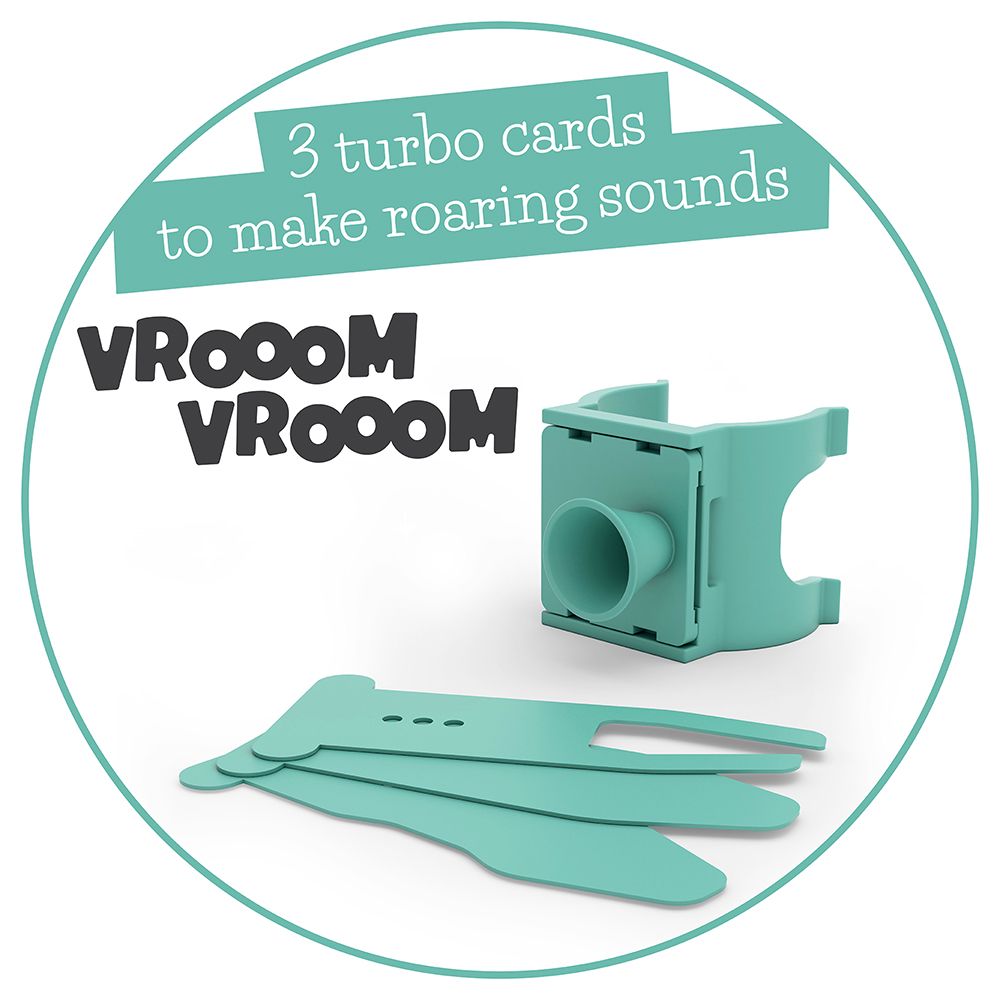 Chillafish BMXie Vrooom uzbuđuje decu dok uče više veština. BMXie Vrooom je višenamenski trenažer za ravnotežu i sada dolazi sa zvučnim „turbo karticama“. Učenje ravnoteže na biciklu za ravnotežu postaje još bolje: umetnite Turbo kartice da biste napravili prave zvuke tutnjave motora na prednjoj viljušci tokom vožnje – VROOM VROOOM! Turbo kartice imaju različita podešavanja za podešavanje nivoa zvuka. Odlično je za pomoć deci da razviju svoje senzorne i fine motoričke veštine. Kao da voze pravi motocikl, posebno sa štitnicima za ruke koji štite ruke i čine da izgledate kao šef.