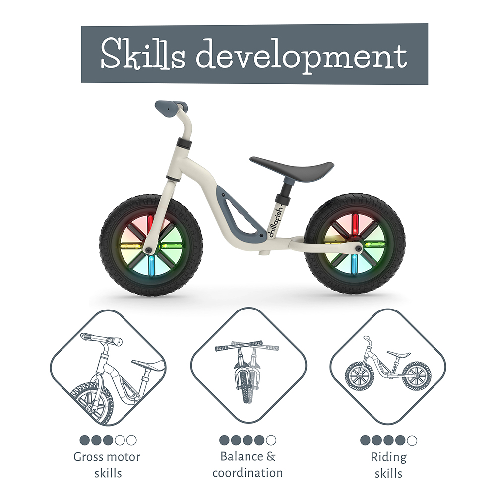 Chillafish Charlie je lagan i stilizovan balans bicikl sa 10‑inčnim točkovima koji je savršen izbor za najmlađe vozače koji tek uče ravnotežu, upravljanje i koordinaciju pre prelaska na pravi bicikl bez trening točkova. Ovaj balans bicikl je izrađen od kvalitetnog metalnog okvira koji teži svega oko 2,5 kg, što omogućava detetu da ga lako kontroliše, a roditeljima da ga jednostavno nose zahvaljujući integrisanoj ručki za prenošenje. Karakteristike: Bezbušne EVA gume (10″): gume se ne mogu probušiti i ne zahtevaju pumpanje – više zabave, manje briga. Podesiva visina sedišta: prilagodljiva od oko 28 cm do 37 cm, pa bicikl „rastu“ sa detetom.