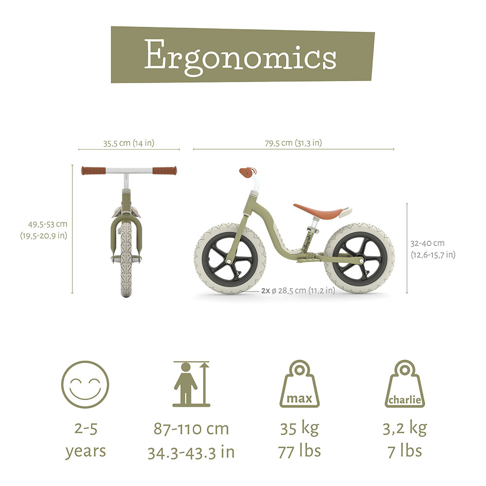 Čilafiš Čarli Luks je hiperlagan trenažer za ravnotežu od 12 inča sa gumama otpornim na probušenje i visokokvalitetnim metalnim ramom težine samo 6,6 funti/3 kg. Savršena igračka za treniranje motoričkih sposobnosti, ravnoteže i upravljanja vašeg mališana! Prilagođeno oblikovano udobno sedište i upravljač se lako podešavaju po visini. Sedište se može podesiti od 12,6-15,7 inča / 32-40 cm, a upravljač se može podesiti od 19,5-20,9 inča / 49,5-53 cm. Zahvaljujući laganom ramu, vaše dete može lako da kontroliše bicikl, a u kombinaciji sa integrisanom ručkom za nošenje na sedištu, olakšava nošenje i roditeljima.