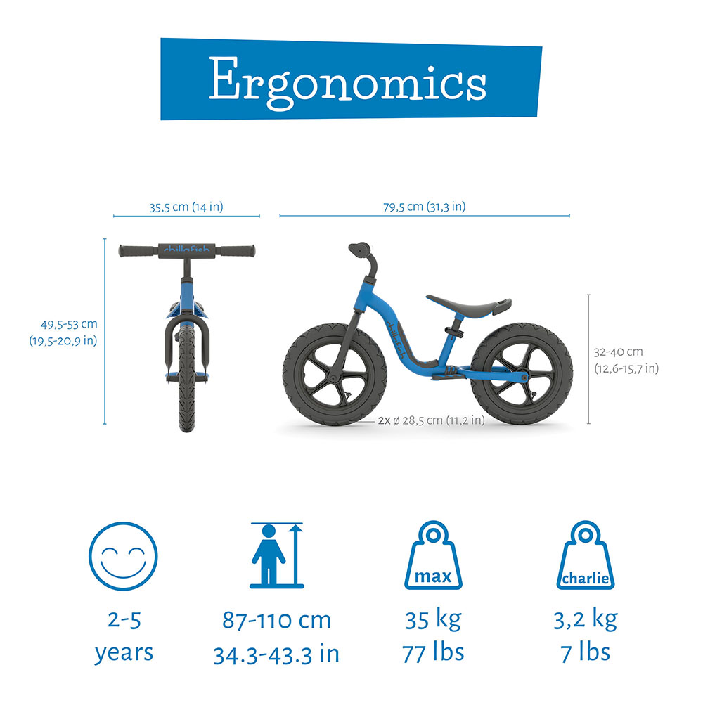 Čilafiš Čarli Sport je hiperlagan trenažer za ravnotežu od 12 inča sa gumama otpornim na probušenje i visokokvalitetnim metalnim ramom težine samo 3 kg. Savršena igračka za treniranje motoričkih sposobnosti, ravnoteže i upravljanja vašeg mališana! Zahvaljujući laganom ramu, vaše dete može lako da kontroliše bicikl, a u kombinaciji sa integrisanom ručkom za nošenje na sedištu, olakšava nošenje i roditeljima. Čarli Sport dolazi sa integrisanim osloncem za stopala i penom za upravljač za pravi trkački izgled. Gume RubberSkin od 12 inča bez probušenja su zaista udobne – više nema potrebe za naduvavanjem guma jer nema rizika od probušenja. Od sada postoji samo zabava!