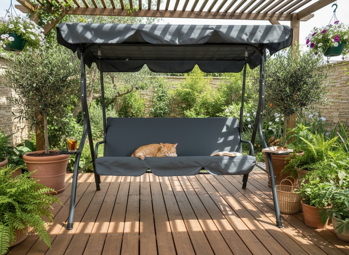 Baštenska ljuljaška sa držačima za čaše – antracit 170 × 110 × 153 cm Uživajte u opuštanju na otvorenom uz baštensku ljuljašku u antracit boji , savršen dodatak za dvorište, terasu ili baštu. Ova moderna ljuljaška za baštu za 2–3 osobe pruža idealno mesto za odmor, druženje i uživanje u svežem vazduhu tokom toplih dana. Kombinacija čvrste konstrukcije i udobnog sedišta čini je odličnim izborom za svakodnevno opuštanje – bilo da pijete jutarnju kafu, čitate knjigu ili provodite vreme sa porodicom. Udobnost i praktičnost na jednom mestu Ova baštenska ljuljaška sa jastucima opremljena je mekanim sedištem koje pruža udobnost čak i tokom dužeg sedenja. Stabilan sistem kačenja omogućava glatko i lagano ljuljanje, stvarajući prijatan osećaj relaksacije. Posebnu praktičnost donose ugrađeni držači za čaše , zahvaljujući kojima vam omiljeni napitak može uvek biti pri ruci dok uživate u odmoru. Stabilna konstrukcija za dugotrajnu upotrebu Ljuljaška je izrađena od čvrstog metalnog rama , koji je otporan na spoljne uticaje i namenjen za korišćenje na otvorenom. Sedište je obloženo kvalitetnim tekstilnim materijalom sa mekanom penom, što dodatno povećava udobnost. Zahvaljujući stabilnoj konstrukciji i kvalitetnim materijalima, ljuljaška je pogodna za dugotrajnu upotrebu u dvorištu ili na terasi. Karakteristike proizvoda Moderna baštenska ljuljaška za dvorište i terasu Elegantna antracit boja koja se uklapa u svaki eksterijer Udobno sedište sa jastucima 2 praktična držača za čaše Stabilna i izdržljiva metalna konstrukcija Pogodna za 2–3 osobe Jednostavna montaža Tehničke specifikacije Dimenzije: 170 × 110 × 153 cm Materijal konstrukcije: metal / čelik Materijal sedišta: tekstil (poliester) sa penom Maksimalno opterećenje: približno 220–240 kg Idealna ljuljaška za opuštanje u dvorištu Ova baštenska ljuljaška sa držačima za čaše predstavlja savršen izbor za stvaranje udobnog kutka za odmor u vašem dvorištu. Moderan dizajn, stabilna konstrukcija i praktični detalji čine je odličnim dodatkom svakom spoljašnjem prostoru. Pretvorite svoju baštu ili terasu u mesto za relaksaciju uz udobnu baštensku ljuljašku koja će postati omiljeno mesto za odmor cele porodice.
