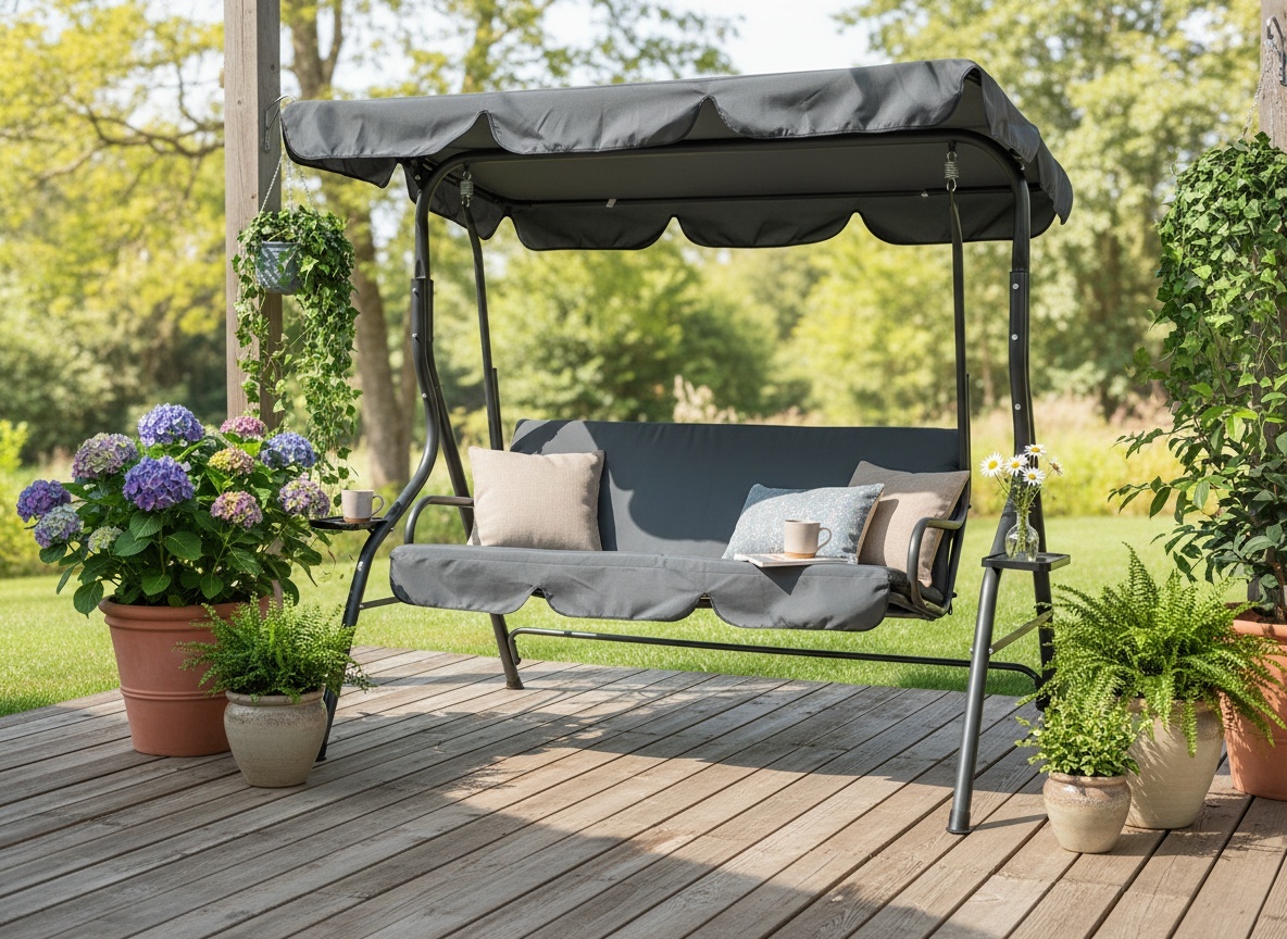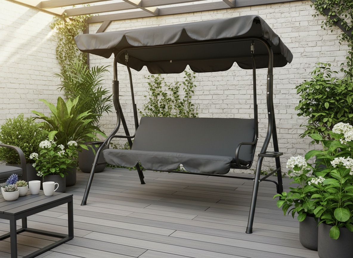 Baštenska ljuljaška 170×110×153 cm, antracit, bez jastuka, sa držačima za čaše