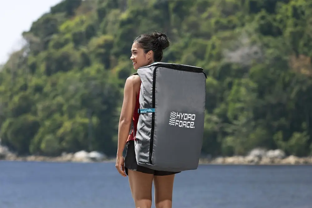 Zahvaljujući TravelTech™ konstrukciji, daska se može sklopiti i vertikalno i horizontalno, što omogućava do 40% kompaktnije pakovanje u odnosu na standardne SUP daske na naduvavanje. Nakon korišćenja, daska se lako ispusti, savije i spakuje u priloženi ranac za transport.