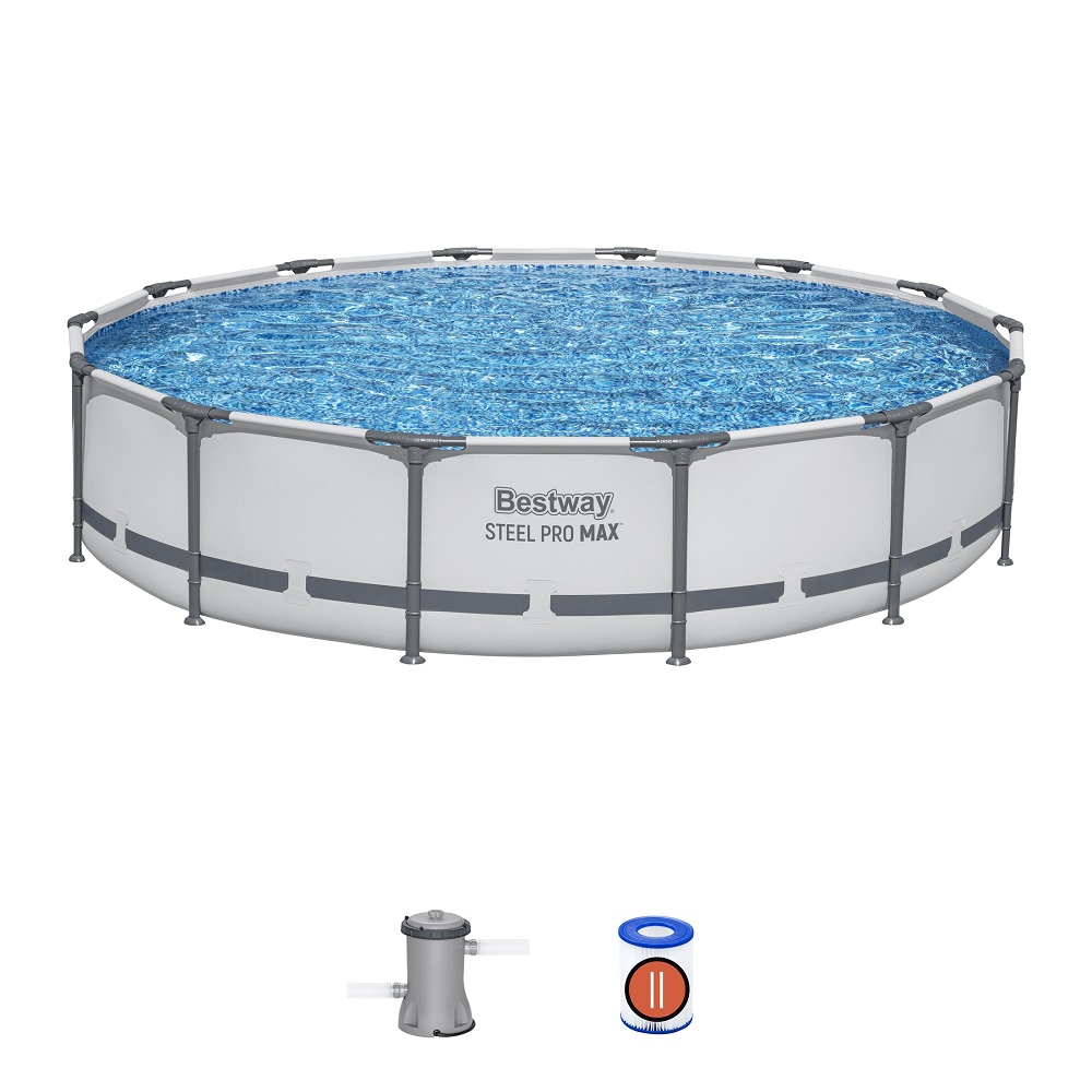 Bestway Steel Pro MAX™ 4.27 m x 84 cm je nadzemni okrugli bazen sa metalnom konstrukcijom i zapreminom od 10.220 litara, idealan za letnje osveženje cele porodice.