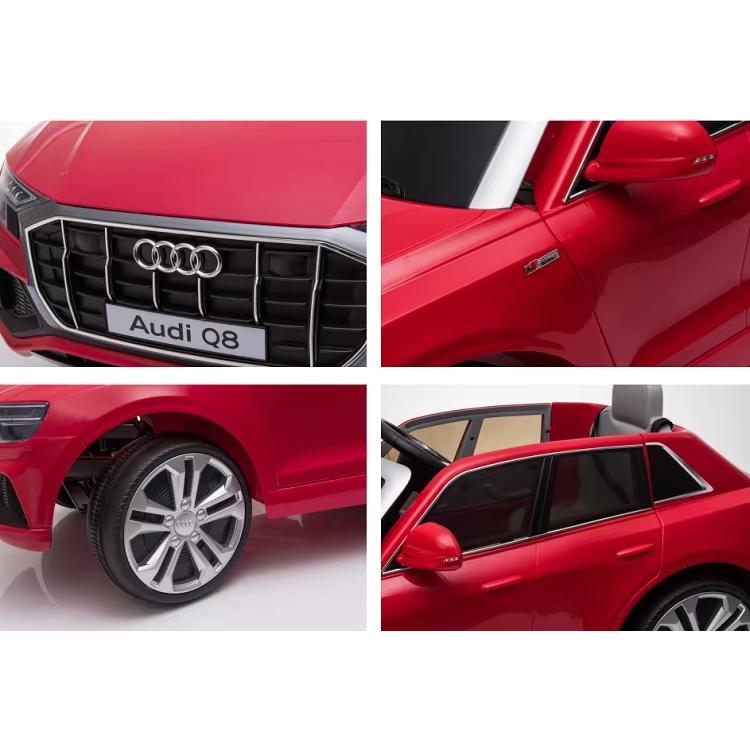 Naziv proizvoda:Licencirani Audi Q8 AUDI Q8 SLAJN 2 motora 12V električni dečiji automobil sa zvaničnom AUDI licencom Dečiji automobil Audi K8 SUV ima senzacionalne komponente koje mu omogućavaju da se kreće brzinom od 3 do 5 km/h. Ima dva snažna motora od 25V i bateriju od 12V. Takođe uključuje LED svetla u farovima, otvarače vrata, muziku i još mnogo toga. Karakteristike dečjeg automobila: – Baterija od 12V i 4,5Ah. – 2 motora od 25V i 12V. – Punjač od 12V sa LED displejem. – Maksimalna brzina 4,5 km/h. – Vožnja napred-nazad sa „mekim startom“. – MP3, (Mini) SD i USB ulaz za vašu muziku. – Zvuk pri pokretanju. – Ručica menjača (napred i nazad). – Dugmad na volanu za zvuk sirene i motora. – LED svetla: farovi, zadnja svetla i osvetljena kontrolna tabla. – EVA gumeni točkovi. – Zadnje vešanje za veću udobnost. – Sigurnosni pojas sa 3 tačke. – Radi sa roditeljskim daljinskim upravljačem i papučicom gasa. – Daljinski upravljač od 2,4 GHz sa podesivom brzinom i funkcijom pauze. – Motor:390#*2 – Pogodno za dečake i devojčice uzrasta od 3 do 5/6 godina. – Nosivost je do 30 kg. – Dimenzije: 108 x 66 x 55 cm. – Težina vozila: 14 kg. – Maksimalna težina tereta: 30 kg. – Vreme igre: Između 90 i 110 minuta, u zavisnosti od upotrebe, terena, težine itd. – Električni automobil mogu da voze roditelji pomoću daljinskog upravljača ili dete ručno. – Sertifikat:CE/EN71/EN62115/ASTM F963/ROHS/EMC – Uputstvo za montažu. – Veličina kutije:110*58*41 cm