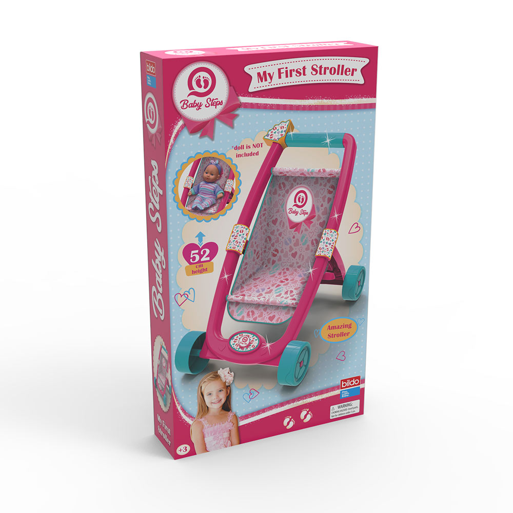Kolica za lutke u roze boji, sa plavim točkićima i dezenom sa motivima u obliku srca. Izrađena od kvalitetne plastike, modernog dizajna, vrlo su lagana za guranje i pokretanje. Broj delova: 11, Dimenzije proizvoda: 32X38,5X55,5 cm, dimenzije pakovanja: 9X37,5X62 cm, uzrast: 3+