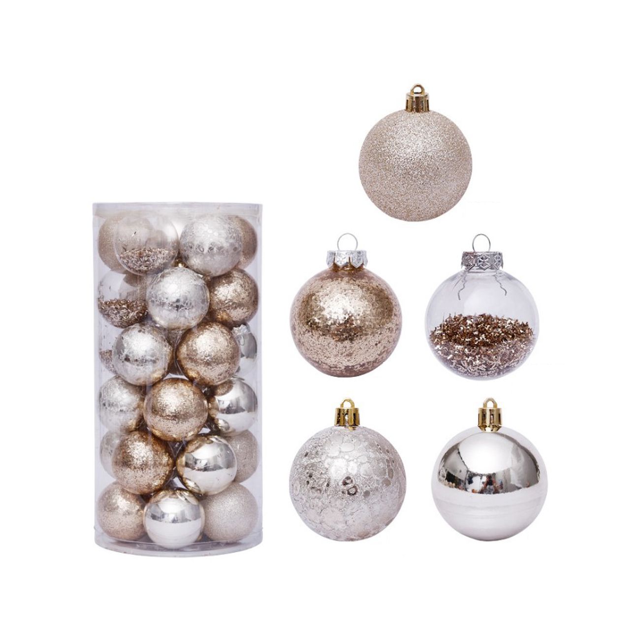 Dizajn: providan sa dekorativnim punjenjem od perli/šljokica, potpuno lakiran sjajno i mat. Materijal: plastika. Pakovanje: 30 komada u paketu. Ono što je svakako deo božićne tradicije je kačenje božićnih ukrasa i kićenje jelke. Sa ovim prelepim kuglicama u delikatnim nijansama zlata ili srebra, vaš dom će zablistati u posebnoj prazničnoj atmosferi sa daškom snežne magije.
