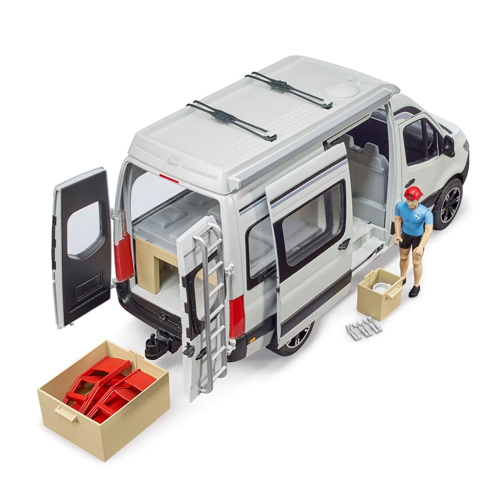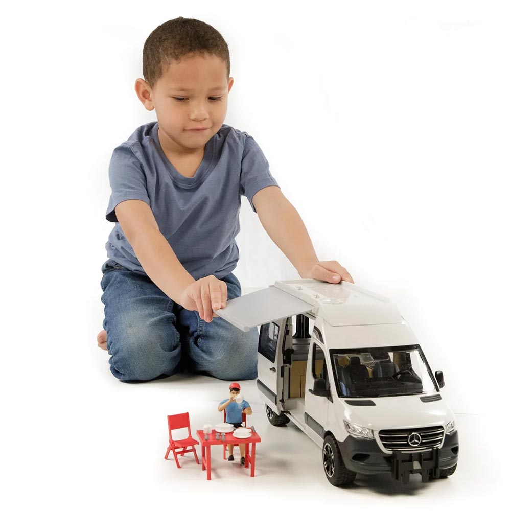 Otkrijte svet igre sa Bruder MB Kamperom sa vozačem i dodacima! Savršen za ljubitelje prirode i kampovanja, ovaj model je opremljen dvostrukim krevetom, šporetom i šarenom tendom za sunčanje. Kamper je opremljen prozorima od prozirne, otporne plastike i omogućava lako otvaranje svih vrata – od vrata vozačke kabine, zadnjih vrata, pa sve do kliznih vrata na bočnoj strani. Set uključuje vozača i kompletan kamping set sa stolicama, stolom i posuđem, tako da deca mogu uživati u igri kao pravi kampisti. Bruder proizvodi pružaju deci priliku da kroz igru istražuju svet oko sebe, a ovaj kamper donosi sate zabave i kreativne igre, koja razvija njihove socijalne veštine i maštu.