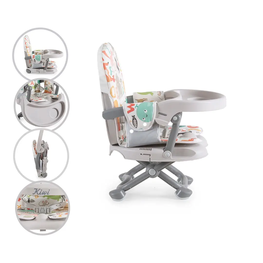 Buster hranilica Kiwi ABC predviđena je za decu koja mogu da sede sama a nosivost je do 15 kg. Može se podesiti u 4 položaja visine koje su podesive prema uzrastu deteta. Ima sigurnosni pojas u 3 tačke vezivanja. Tacna stolice je jednoslojna i ima poseban držač za čaše.