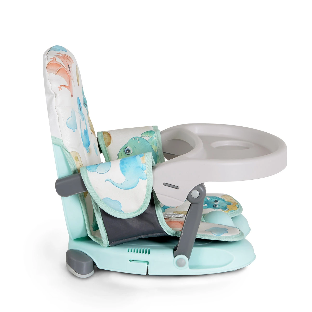 Buster hranilica Kiwi Dinos predviđena je za decu koja mogu da sede sama a nosivost je do 15 kg. Može se podesiti u 4 položaja visine koje su podesive prema uzrastu deteta. Ima sigurnosni pojas u 3 tačke vezivanja. Tacna stolice je jednoslojna i ima poseban držač za čaše.