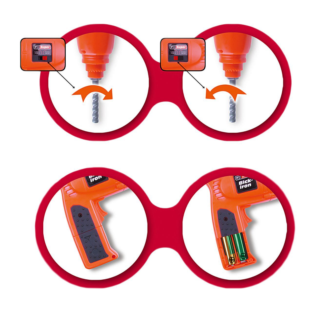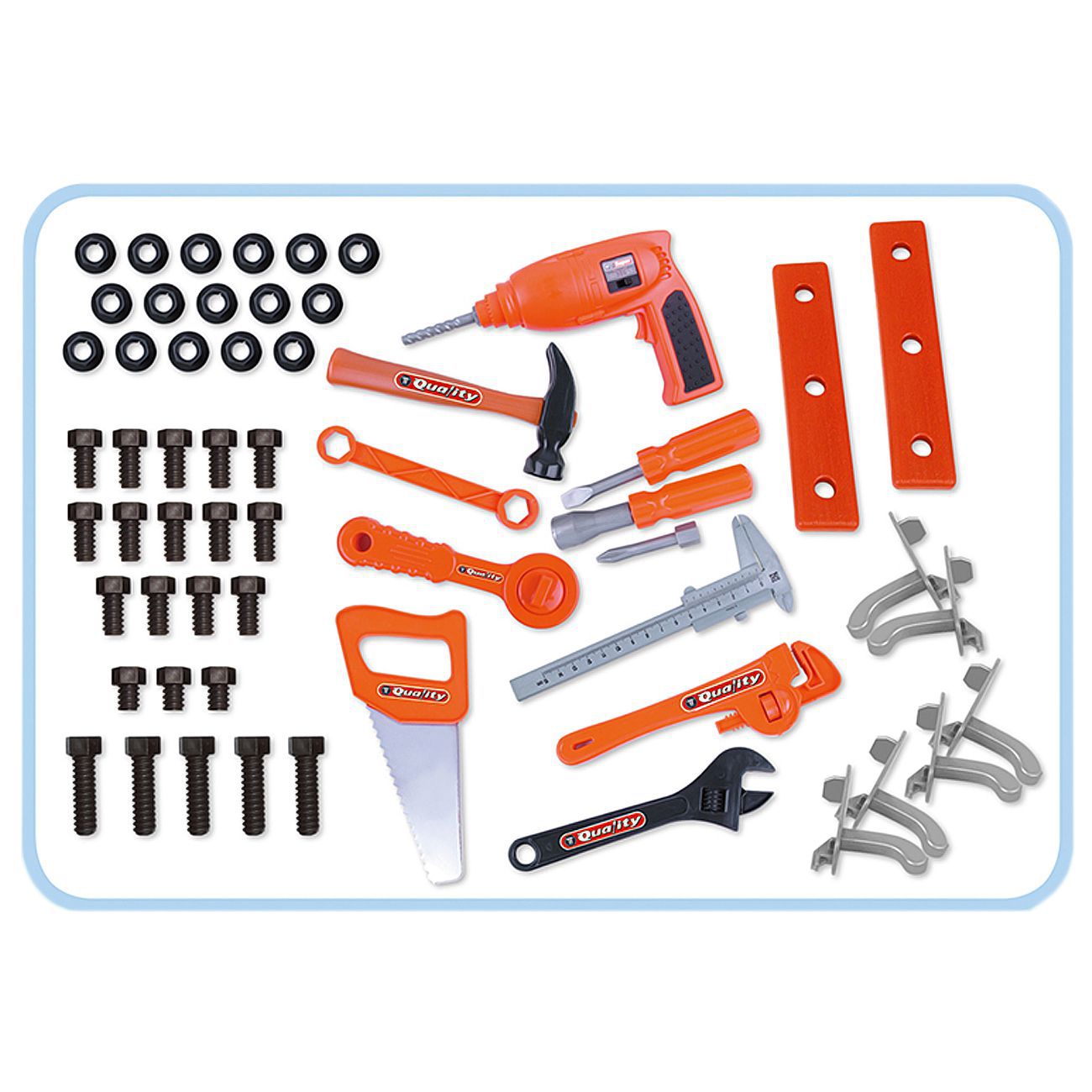 • U setu: vici i matice, čekić, pila, okasti ključevi, odvijač s bitovima, kuke, bušilica (imitira zvuk prave bušilice, okreće se) i dr. _x000D_