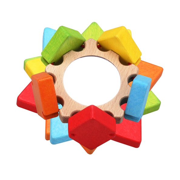 Drveni cvet ima latice u različitim bojama koje stimulišu znatiželju kod bebe. Mogu se pomerati gore dole uz zvuk kliktanja.