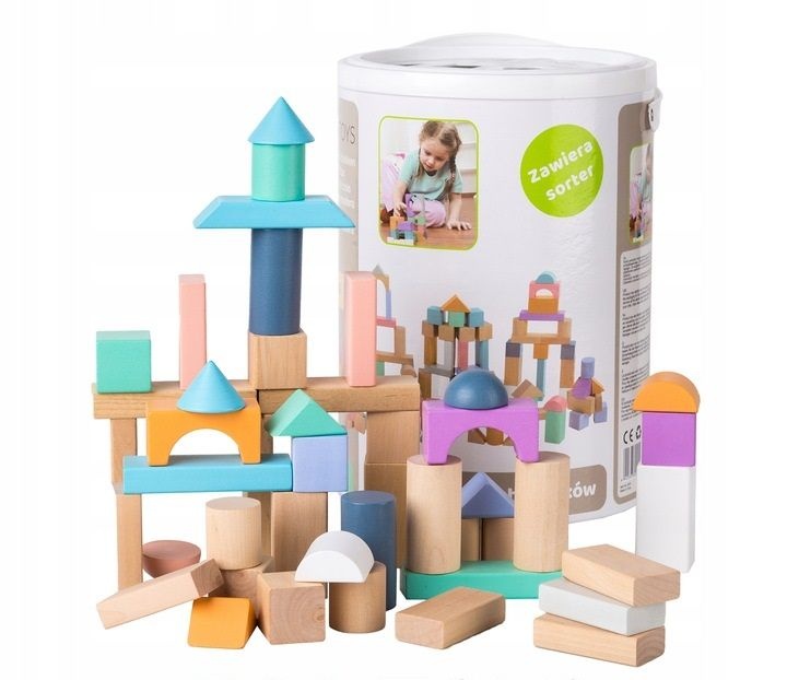 Drvene kocke 100 komada sa kanticom i sorterom ECOTOYS