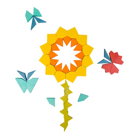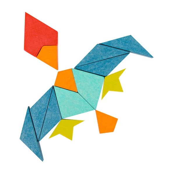 Slaganjem delova u obliku trougla, kvadrata dete uči oblike, razvija logiku, koordinaciju pokreta i preciznost.