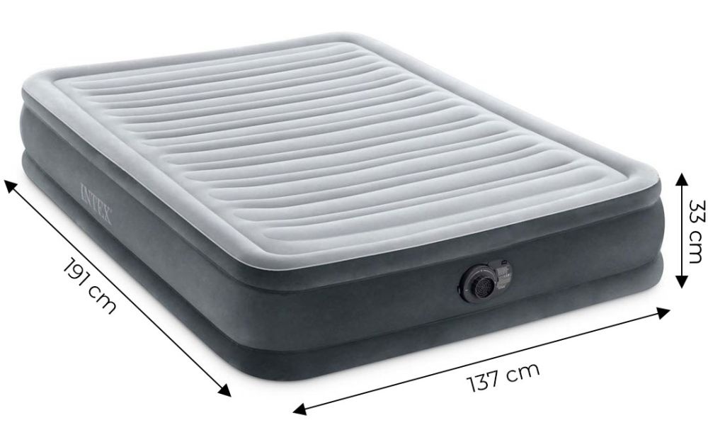 Otkrijte vrhunsku udobnost i praktičnost uz dušek na naduvavanje INTEX dimenzija 191×137 cm, dizajniran za dvoje. Idealan je za goste, putovanja ili kampovanje, pružajući savršeno rešenje za udoban san gde god da se nalazite. Karakteristike proizvoda: – Praktična dimenzija: Površina od 191×137 cm idealna je za dvoje, pružajući dovoljno prostora za udoban i miran san. – Automatska pumpa: Integrisana električna pumpa omogućava brzo i jednostavno naduvavanje i ispumpavanje dušeka za samo nekoliko minuta. – Kvalitetni materijali: Izrađen od čvrstog PVC materijala sa baršunastom površinom koja je prijatna na dodir i sprečava klizanje posteljine. – Dura-Beam tehnologija: Unutrašnja struktura sa Fiber-Tech vlaknima osigurava stabilnost, čvrstoću i dugotrajnu udobnost tokom spavanja. – Kompaktno skladištenje: Nakon ispumpavanja, dušek se lako sklapa i čuva u priloženoj torbi za nošenje. Specifikacije proizvoda: Dimenzije: 191 x 137 x 25 cm Maksimalna nosivost: 272 kg Težina: približno 4,5 kg Uključeni dodaci: torba za skladištenje i uputstvo za upotrebu Prednosti: Brza priprema zahvaljujući integrisanoj pumpi. Lagan i jednostavan za transport, idealan za putovanja i kampovanje. Pogodan za svakodnevnu upotrebu kao privremeni krevet za goste. Dušek na naduvavanje za dvoje sa automatskom pumpom INTEX je praktično i udobno rešenje za spavanje u svim uslovima. Uz jednostavnu upotrebu i moderan dizajn, pruža vrhunski komfor gde god da ste. Nabavite ga već danas!