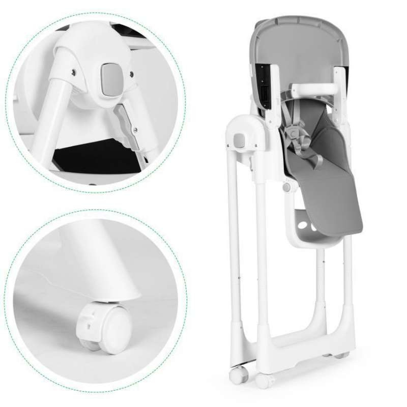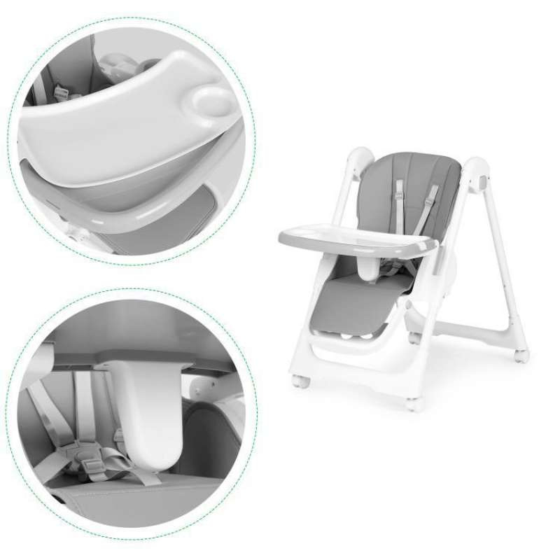 Okvir sedišta hranilice za bebe je napravljen od metala, što garantuje stabilnost stolice. Mekana presvlaka sedišta je napravljena od eko kože i lako se uklanja radi čišćenja. Bezbednost deteta je obezbeđena sigurnosnim pojasevima u 5 tačaka i bravom protiv klizanja. Posuda ima posebno udubljenje koje sprečava da se bilo šta prolije po podu. Sedište je takođe podesivo: naslon, naslon za noge i visina sedišta. Dodatna prednost sedišta su izdržljivi točkovi sa bravom i gumenim gazištem. Maksimalno opterećenje stolice je 20 kg. PAKOVANJE Proizvod je upakovan u posebno ojačanu kutiju za transport, svi elementi stolice su pravilno pričvršćeni da bi se sprečilo oštećenje tokom transporta. Dimenzije pakovanja: 51x23x56 cm Težina: 7 kg
