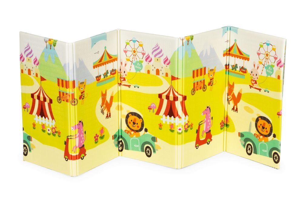 JOY sklopiva podloga sa dva lica Veseli akrobati + Planinske kućice 180x200x1 cm
