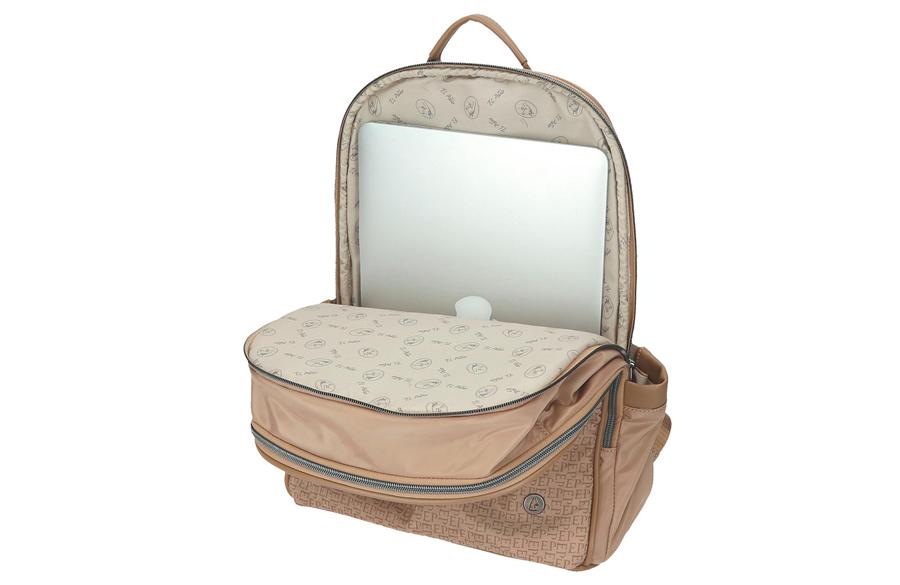 El Potro Luna modni ranac spaja prepoznatljiv španski dizajn, praktičnost i eleganciju u jednom aksesoaru. Ovaj model je savršen za žene koje žele da ostanu organizovane i stilizovane tokom dana — od jutarnje kafe, preko sastanaka, do putovanja. Izrađen od kombinacije visokokvalitetnog poliestera i eko kože, ženski ranac za laptop  je lagan, izdržljiv i otporan na habanje. Materijal je jednostavan za održavanje, dok metalni detalji i utisnut logo brenda donose sofisticiran, ali nenametljiv izgled.