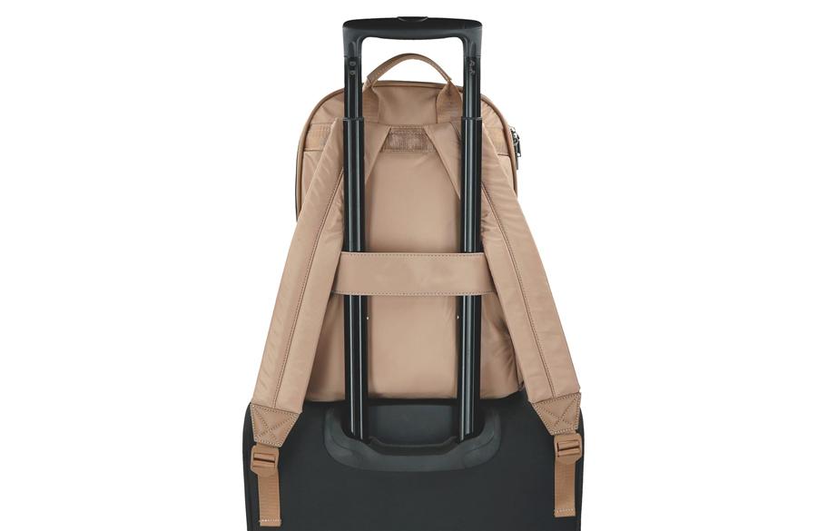 Dimenzije ranca su 29 × 40 × 11 cm, što ga čini kompaktnim, ali dovoljno prostranim za svakodnevne obaveze. Unutrašnjost je pažljivo osmišljena – jedan glavni odeljak sa pregradom za laptop do 14 inča, dva manja otvorena džepa i jedan džep sa rajsferšlusom omogućavaju savršenu preglednost i sigurnost. Pored toga, prednji i bočni spoljašnji džepovi pružaju brz pristup najvažnijim stvarima, a zadnja traka za pričvršćivanje na kofer olakšava putovanja. Mekane, podesive naramenice obezbeđuju potpunu udobnost čak i tokom dužeg nošenja.