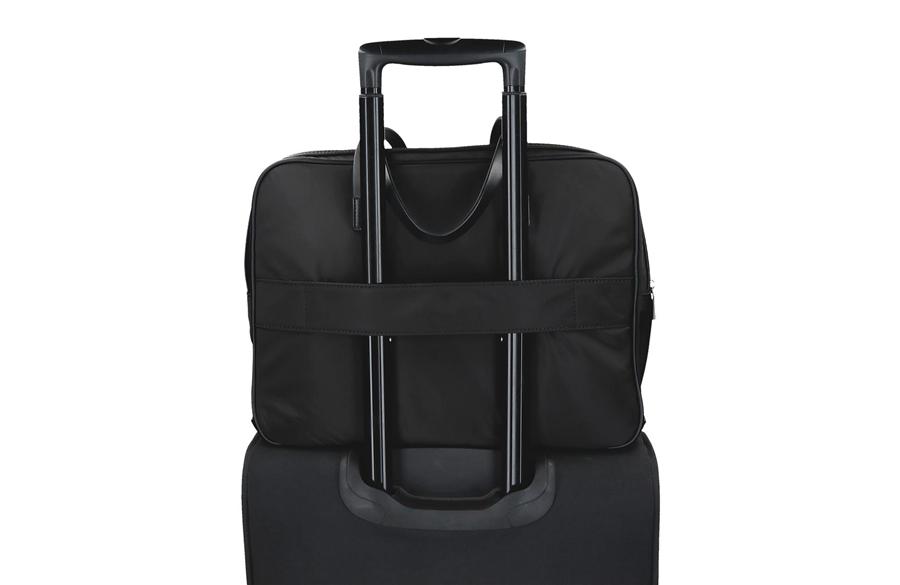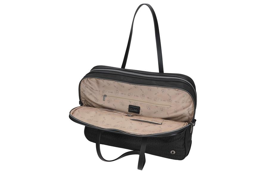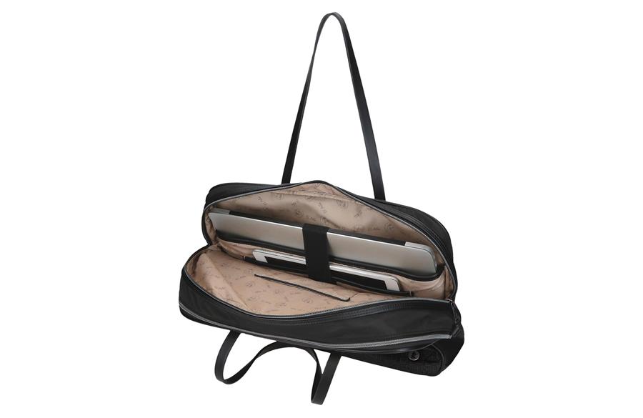 Sa dimenzijama 40 × 32 × 8 cm, ova torba nudi izuzetnu organizaciju prostora i praktičnost. Sadrži dva odvojena glavna odeljka sa rajsferšlusom — jedan je posebno dizajniran za laptop do 15,6 inča (35,5 × 26 × 3 cm) i tablet, sa dodatnim sigurnosnim kaišem, dok drugi nudi dovoljno prostora za dokumente, planer i poslovne dodatke. Unutrašnjost je obložena brendiranom postavom i opremljena unutrašnjim džepom sa rajsferšlusom i otvorenim džepovima za sitnice. Na spoljašnjoj strani nalaze se prednji i zadnji džepovi, idealni za mobilni telefon, ključeve ili pasoš, dok se zadnja traka za pričvršćivanje na kofer pokazuje kao praktično rešenje prilikom putovanja. Torba se može nositi na tri načina — u ruci pomoću elegantnih ručki, preko ramena ili unakrsno pomoću podesivog kaiša, što omogućava maksimalnu udobnost i prilagođavanje svakoj situaciji.