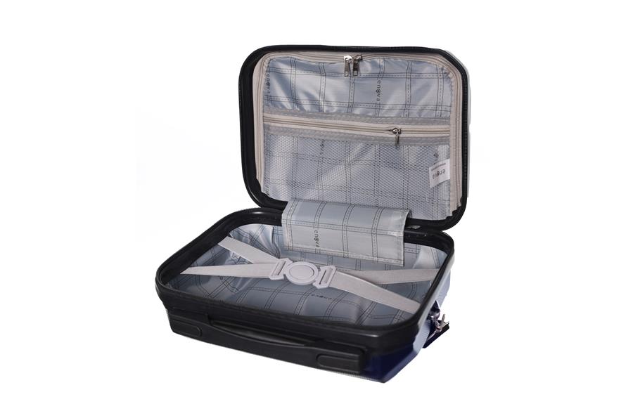 Sa dimenzijama 30 × 22 × 16 cm, neseser je dovoljno prostran za sve potrepštine koje želiš pri ruci. Unutrašnjost je obložena kvalitetnom postavom sa Enova logom, a sadrži elastične trake i džepove koji omogućavaju urednu organizaciju. Zahvaljujući traci za pričvršćivanje na kofer, možeš ga lako kombinovati sa većim modelima iz kolekcije. Dodatni kaiš za nošenje preko ramena pruža slobodu pokreta i udobnost tokom putovanja.