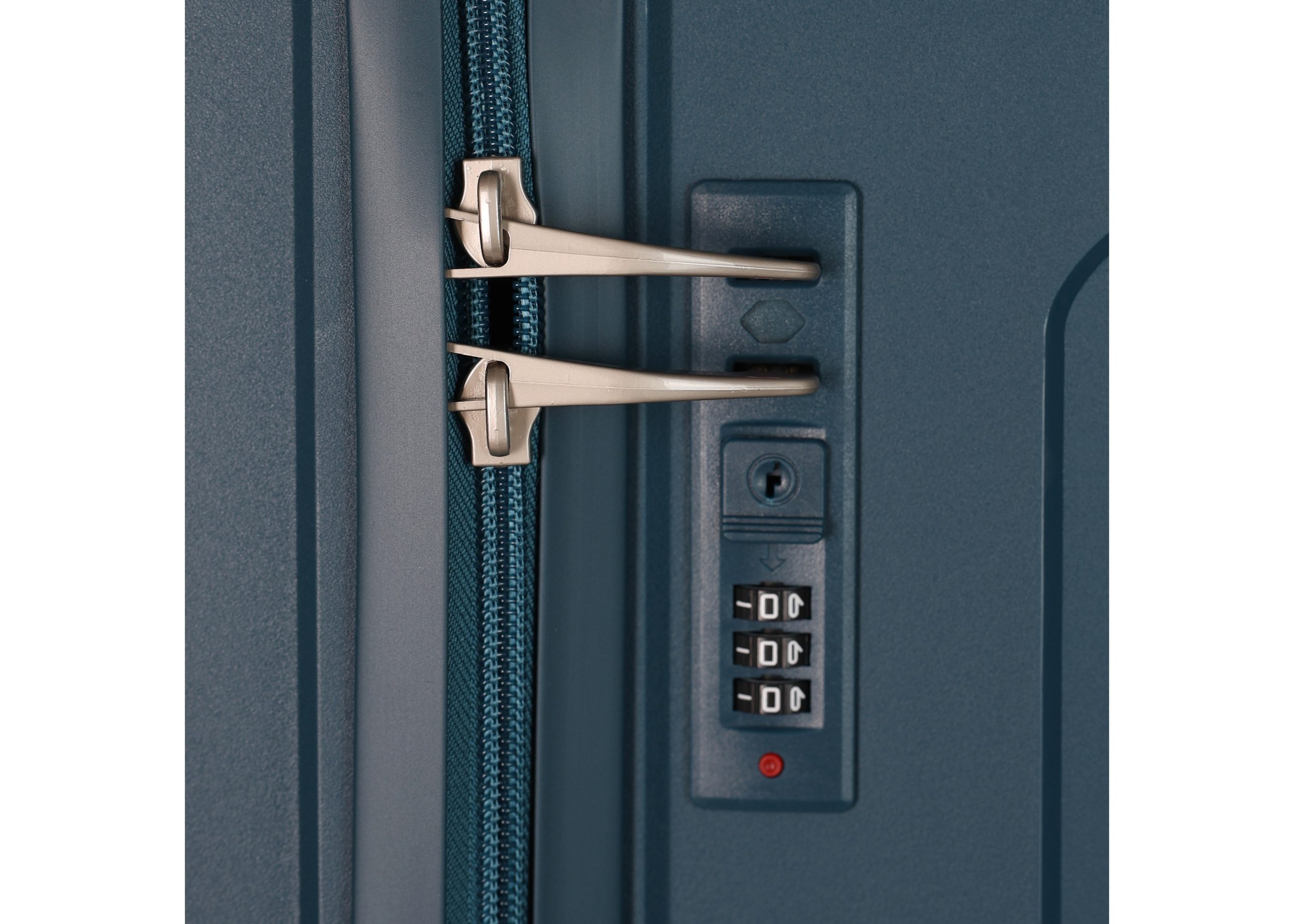 Koferi kombinuju moderan dizajn i vrhunsku funkcionalnost, izrađeni su od izuzetno izdržljivog, ali laganog polipropilena koji pruža pouzdanu zaštitu i otpornost na udarce tokom putovanja. Zahvaljujući ojačanoj aluminijumskoj teleskopskoj ručki, upravljanje koferom je stabilno i jednostavno, dok četiri dupla točkića sa rotacijom od 360° omogućavaju lako i glatko kretanje u svim pravcima. Unutrašnjost je obložena mekom postavom u sivoj boji, koja unosi dozu elegancije, štiti sadržaj i olakšava organizaciju. Dodatni nivo sigurnosti obezbeđuju glavni rajsferšlus sa zaštitom od krađe i brava, idealna za sigurnu kontrolu prtljaga na međunarodnim aerodromima.