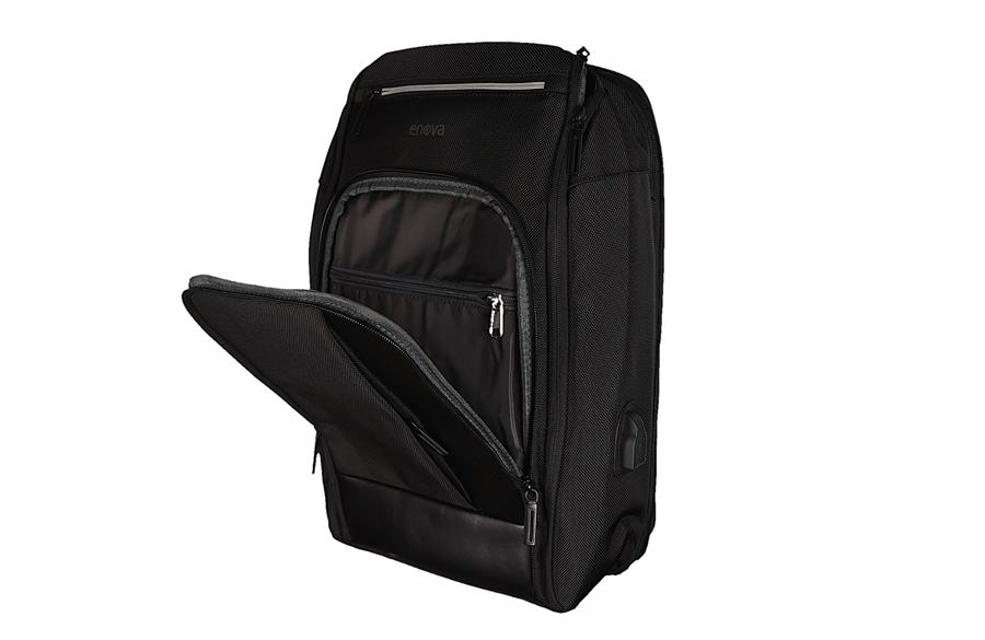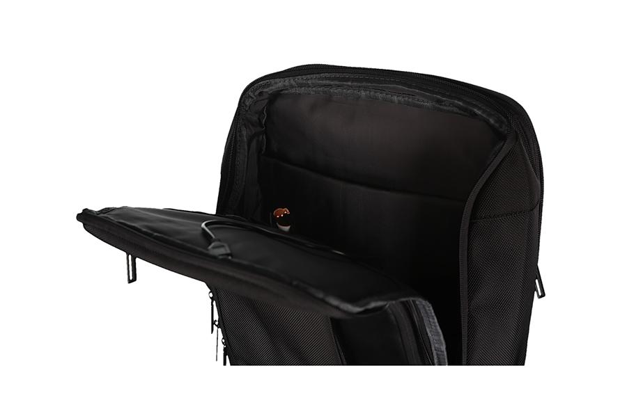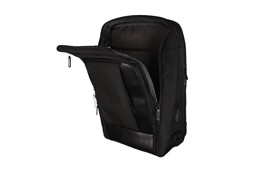 Ranac je sa specifičnim odeljkom za laptop do 15,6″ (35,5x26x3cm) kao i sa pregradom za tablet i unutrašnjim džepom za nošenje dokumenata. Veliki glavni džep sa unutrašnjim organizatorom za čuvanje 2 olovke, mobilnog telefona i manjih sitnica, uz poseban veliki džep za tablet i integrisan USB port. U prednja 3 džepa možete smestiti sve Vaše sitnice da Vam uvek budu na dohvat ruke. Bočni džep je idealan da imate flašicu vode uvek uz Vas.  Ojačana leđa sa širokim i ergonomskim  kaiševima koje se savršeno prilagođavaju leđima kako bi pružile najveću udobnost. Mogućnost prilagođavanja koferu.