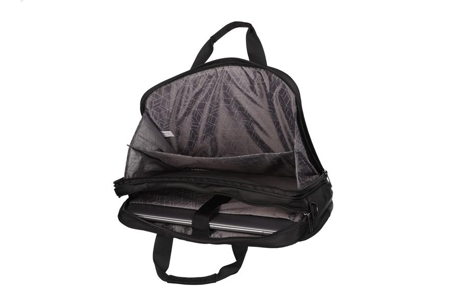 Glavna pregrada sa posebnim džepom za računar do 15,6″ (35,5x26x3cm), veliki odeljak za čuvanje dokumenata kao i organizatorom sa džepom sa rajsferšlusom i dva manja džepa. Veliki prednji i zadnji džep sa rajsferšlusom za odlaganje manjih dodataka, kao i manji prednji džep za sitnice koje uvek treba da budu na dohvat ruke. Torbu možete nositi u ruci ili preko ramena zahvaljujući podesivom kaišu.