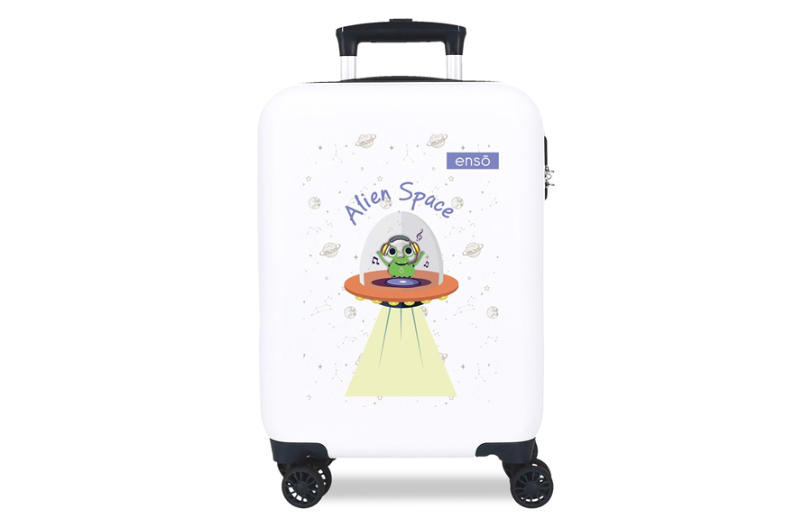 ENSO ALIEN SPACE dečiji kofer 50 cm stvoren je za decu koja obožavaju  sve što miriše na svemirske avanture. Belu osnovu ukrašava simpatični alien DJ u svojoj letećoj „diskoteci“. Sitni galaktički motivi daju koferu zabavan, neobičan i ultra moderan izgled. Lagane konstrukcije i izdržljive ABS školjke, ovaj kofer lako postaje omiljeni saputnik za svaku porodičnu rutu — od kraćih letova do vikend putovanja.