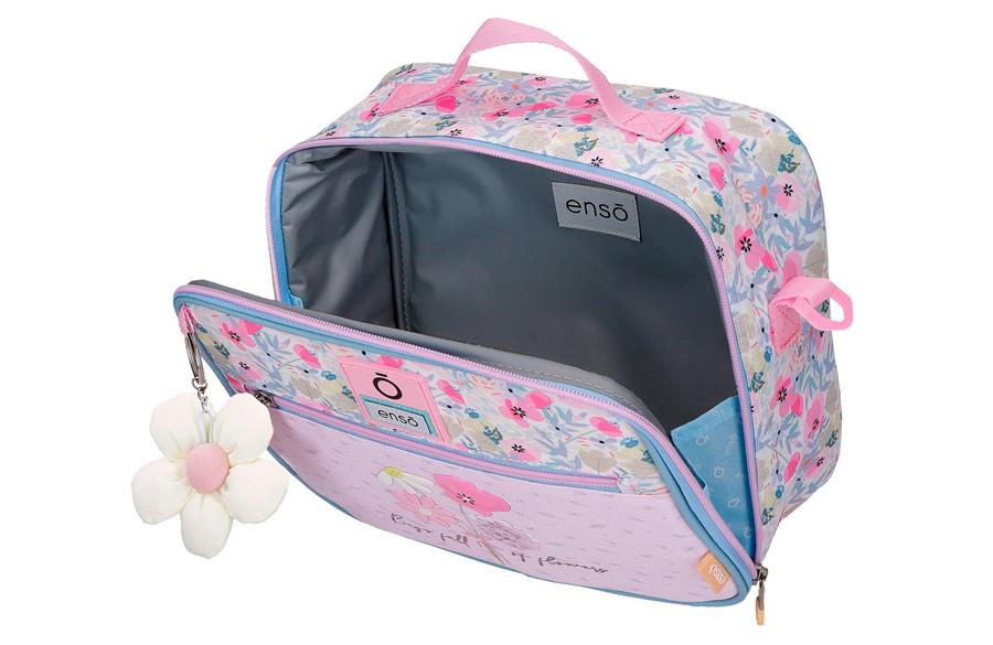 Kolekcija Enso Full of Flowers slavi delikatnost i svežinu, donoseći jedinstven dizajn inspirisan prirodom. Šarmantni cvetni buketi na suptilnoj plavoj pozadini stvaraju osećaj smirenosti, dok istovremeno naglašavaju živost boja, pružajući savršen balans između elegancije i razigranosti. Ova kolekcija rančeva i aksesoara kombinuje funkcionalnost i estetiku, čineći je idealnim izborom za sve koji žele da unesu dašak prirodne lepote u svoje svakodnevne avanture i putovanja. Uz Enso Full of Flowers, svaki korak postaje poseban, a stil odiše svežinom i radošću!