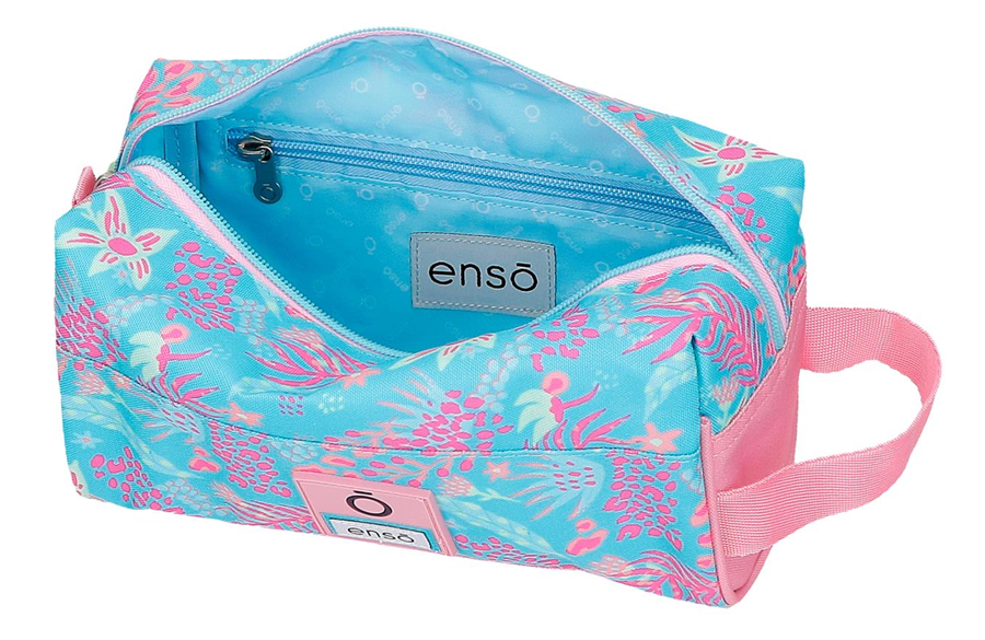 Enso JUNGLE MOOD dečiji neseser donosi nežne tirkizno-roze tonove i floralne motive u prepoznatljivom razigranom stilu kolekcije. Napravljen je od izdržljivog poliestera koji dobro podnosi svakodnevnu upotrebu, pa je idealan za putovanja, ekskurzije i školsku rutinu.