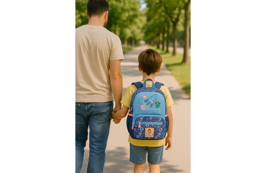 Dimenzije ranca su 23 × 28 × 10 cm, idealne za vrtićki uzrast. Glavni odeljak je dovoljno širok da primi užinu, rezervnu majicu, igračku ili sve ono što mali astronauti vole da nose sa sobom. Dva prednja džepa pružaju dodatni prostor za sitnice koje treba da budu pri ruci, dok dva bočna džepa olakšavaju nošenje bočice s vodom ili maramica. Sve je lepo pregledno, lako dostupno i napravljeno tako da dete samo može da se snađe. Široke, podesive naramenice savršeno se prilagođavaju leđima mališana i obezbeđuju udobnost tokom celog dana, dok je gornja ručka praktična za brzo nošenje i odlaganje.