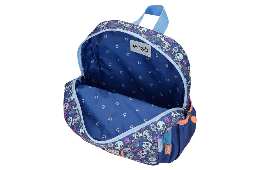Enso NEW FRIENDS ranac za vrtić donosi vesele vanzemaljce, raketicu i kombinaciju plavih tonova koja odmah osvaja klince. Napravljen je od kvalitetnog, laganog poliestera i idealan je za vrtić, kraće izlete i svakodnevne aktivnosti.