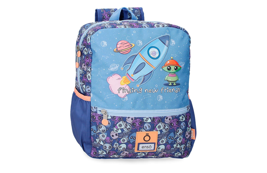 Enso NEW FRIENDS ranac za vrtić kolekcije spaja svemirske motive, jarke boje i simpatične likove koji mališanima odmah privuku pažnju. Idealna je opcija za vrtić, park ili kratke porodične izlete. Raketica, planete i preslatki vanzemaljci stvaraju vedar i razigran izgled koji inspiriše maštu.