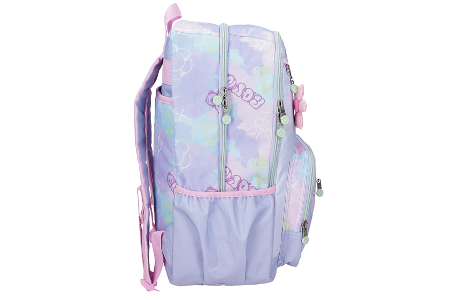 Dimenzije ranca su 32 × 44 × 17 cm, što omogućava dovoljno prostora za sve školske potrepštine. Ima dva glavna odeljka idealna za knjige, sveske i materijal za nastavu, dok prednji džep sa rajsferšlusom olakšava čuvanje sitnica koje treba da budu nadohvat ruke. Dva bočna džepa su praktična za flašicu sa vodom ili užinu. Zahvaljujući širokim i podesivim naramenicama, ranac se savršeno prilagođava leđima i pruža maksimalnu udobnost tokom nošenja. Zadnja traka za pričvršćivanje na kofer čini ga idealnim i za putovanja.