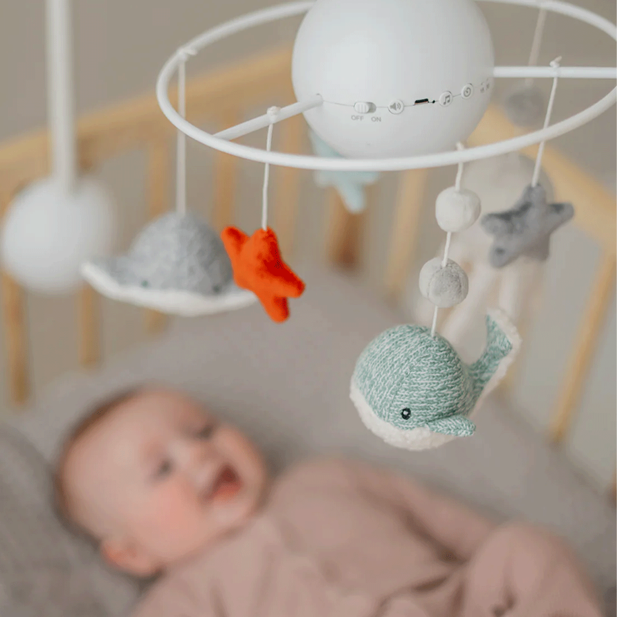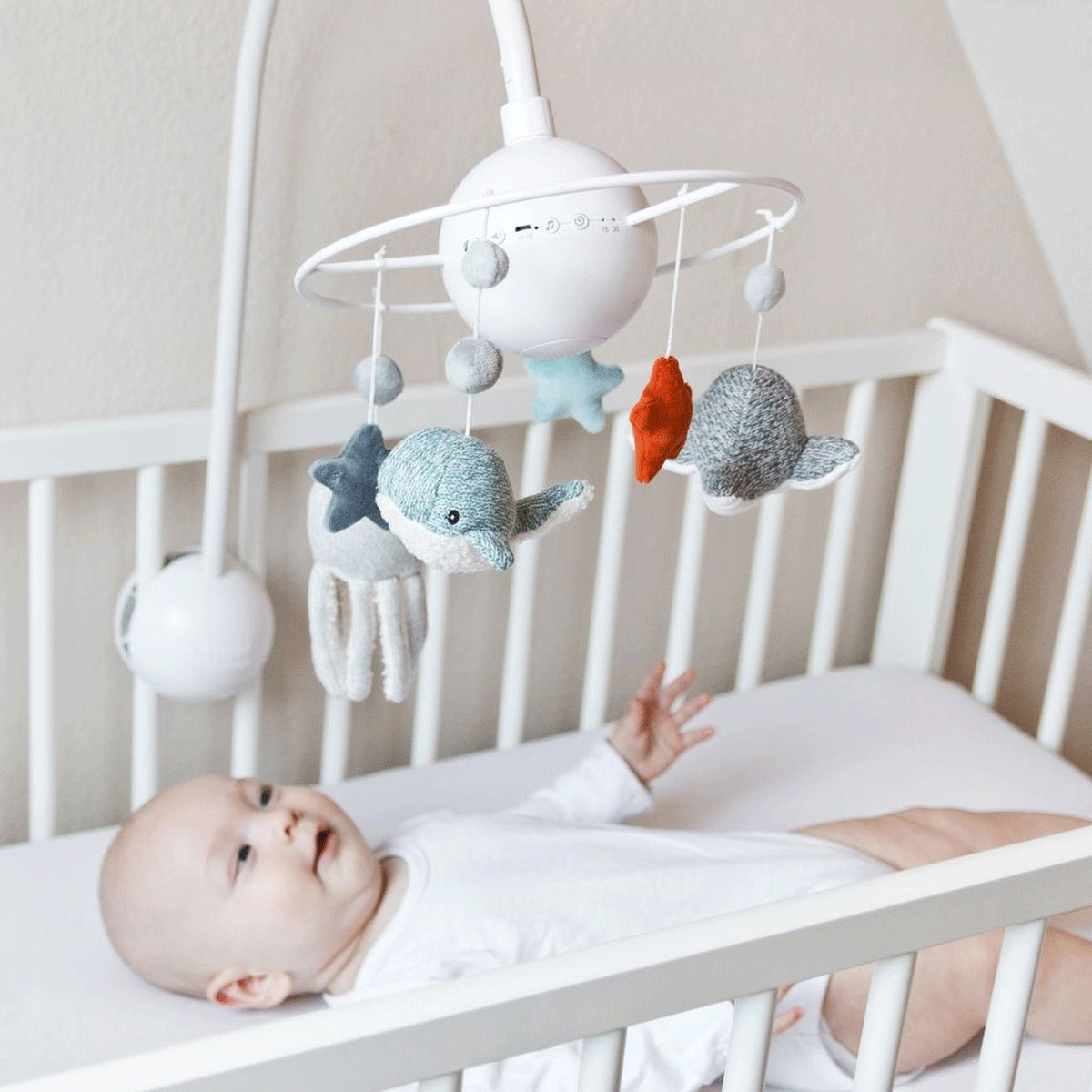Flow Amsterdam muzička vrteška smiriće vašu bebu dok sluša fine melodije i posmatra svoje okeanske prijatelje. Postoji 4 različite između kojih mžete birati, naše omiljene su Mocart i meditacija! Vrteška će stimulisati vizuelni razvoj bebe.