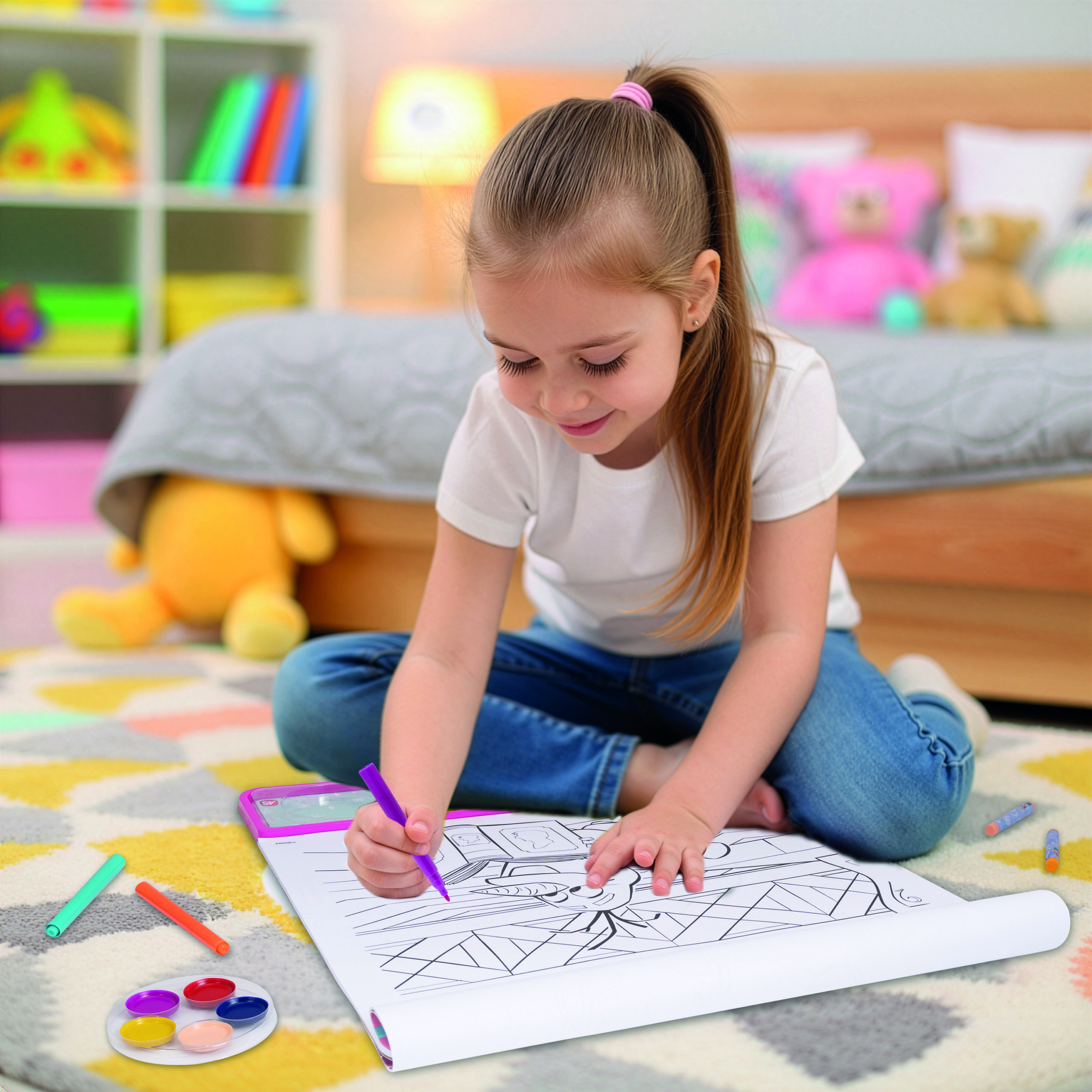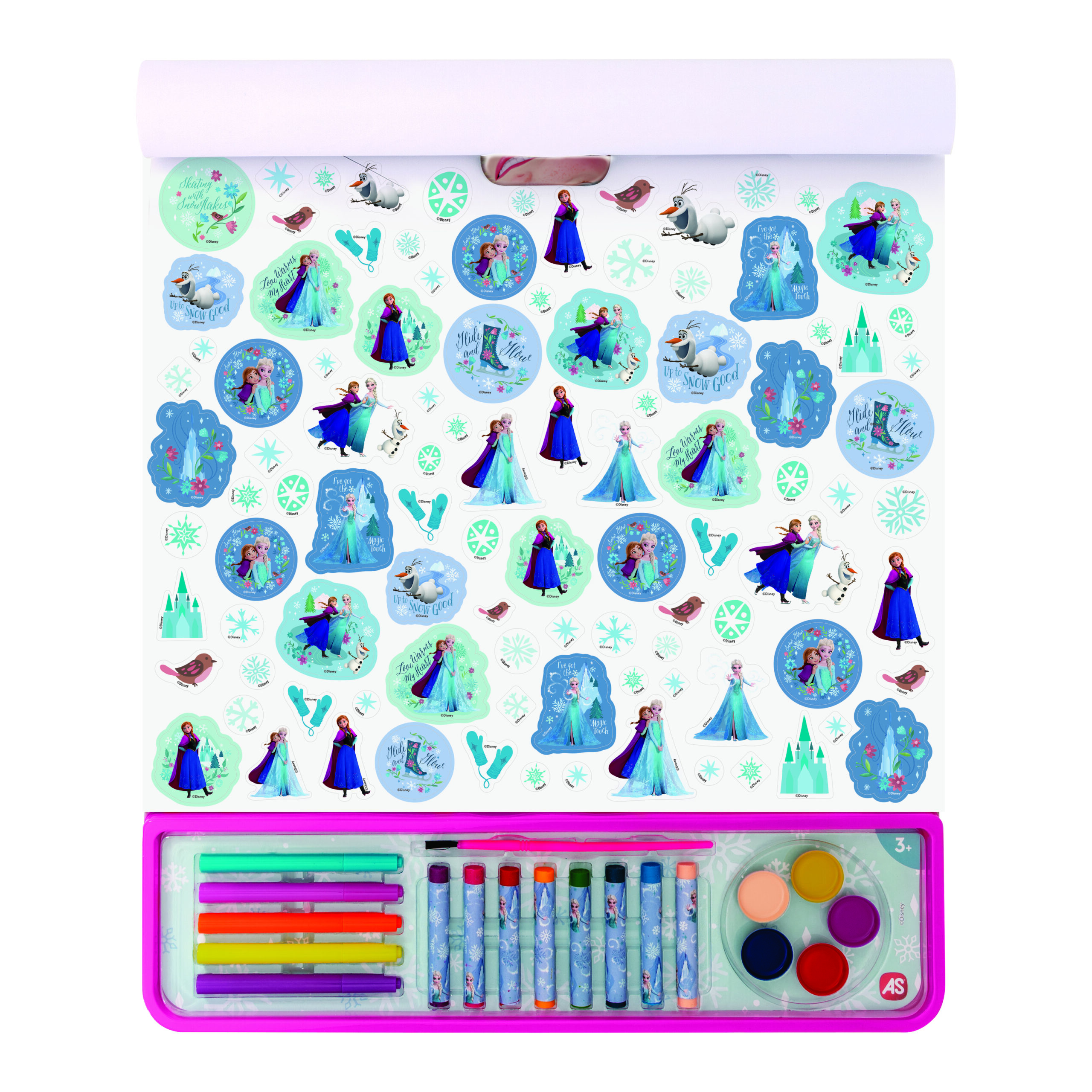 Kompletan kreativni set sa svim što je potrebno da dete upozna čarobni svet omiljenih junakinja iz crtanog filma Frozen – Elsa i Ana i oživi ih kroz svoje crteže i boje.