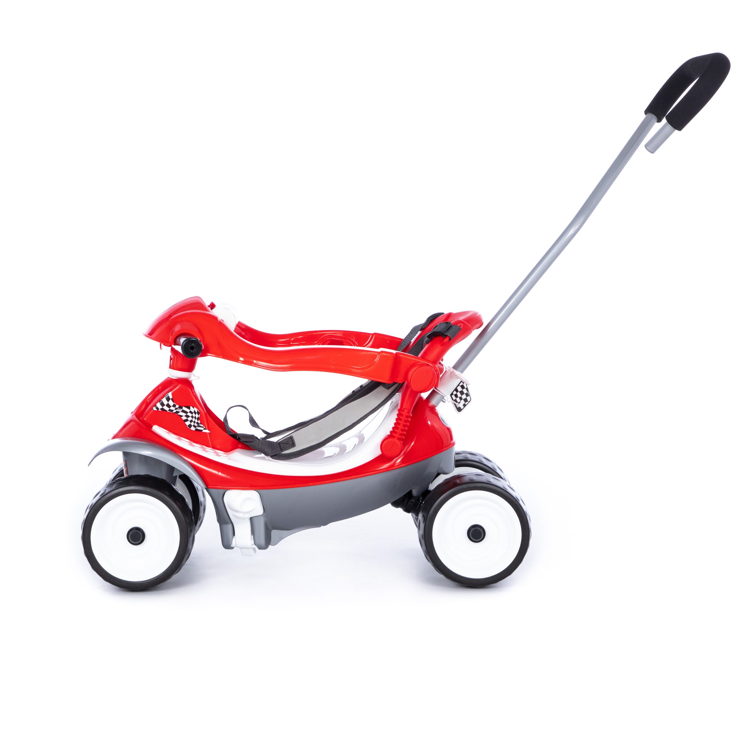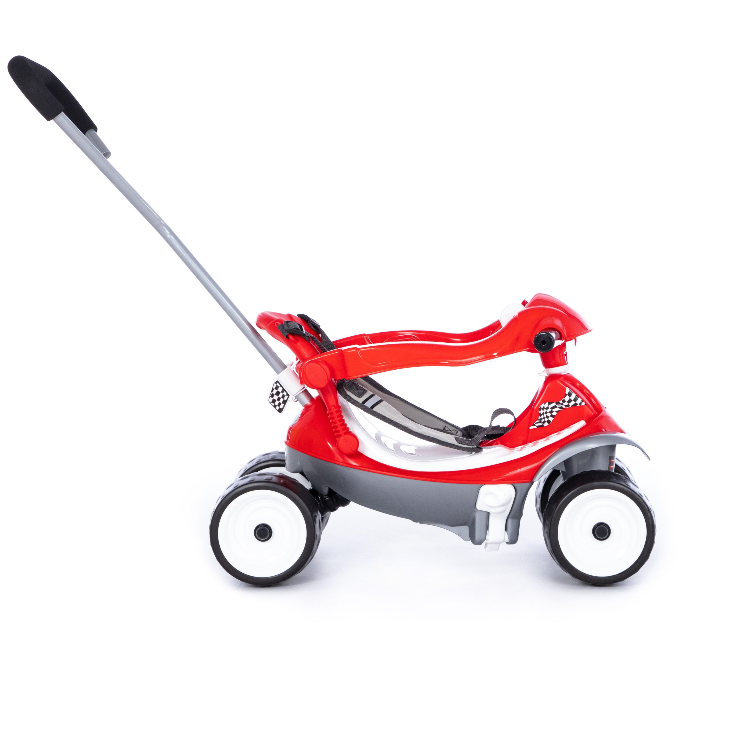Igračka ima realističan dizajn. Kolica su izrađena od visokokvalitetne plastike, ergonomskog su oblika i niskog pristajanja, što omogućava udobno kretanje. Trake za pričvršćivanje koje se mogu ukloniti pružaju dodatnu sigurnost. Kretanje se vrši odgurivanjem nogu. To je moguće i zahvaljujući uklonjivoj ručki koja omogućava roditeljima da kontrolišu pravac kretanja deteta i guraju ga ispred sebe, poput kolica. Točkovi igračke su napravljeni od penaste gume – bezbednog materijala. Dimenzije 655х360х420 sklopljeno 920х360х775mm