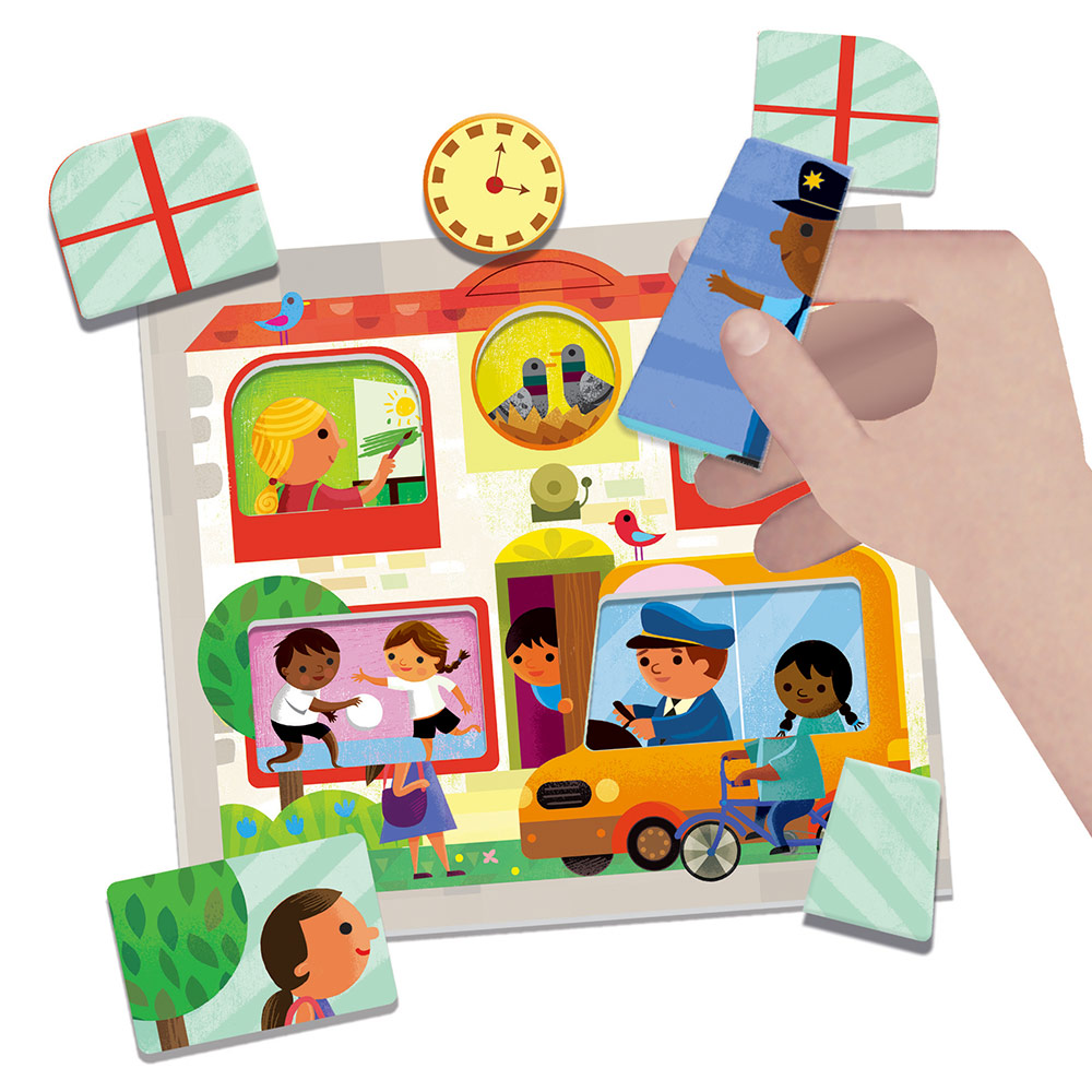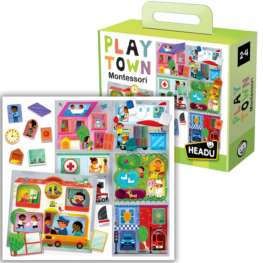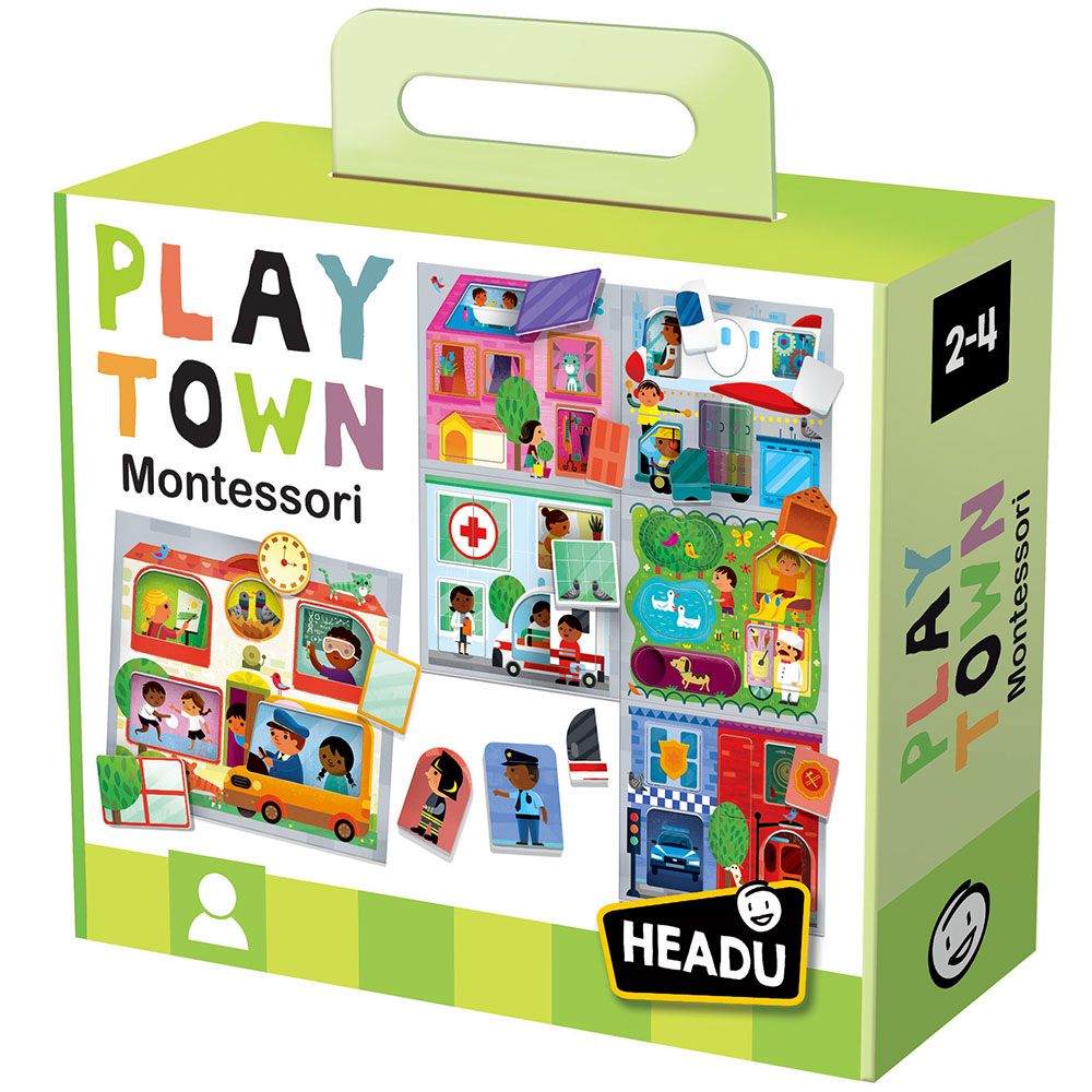 Montesori igra – Moj grad je orijentisana na treniranje osnovnih i korisnih vestina koje na spontan način podsticu razvoj prirodnih kapaciteta. Podstice ucenje o gradu i sirem svetu, prepoznavanje mesta u zajednici, identifikaciju uloga i poslova, kao i razvijanje gradjanske svesti. Dimenzije pakovanja: 28x25x6cm. Uzrast: 2-5 god.
