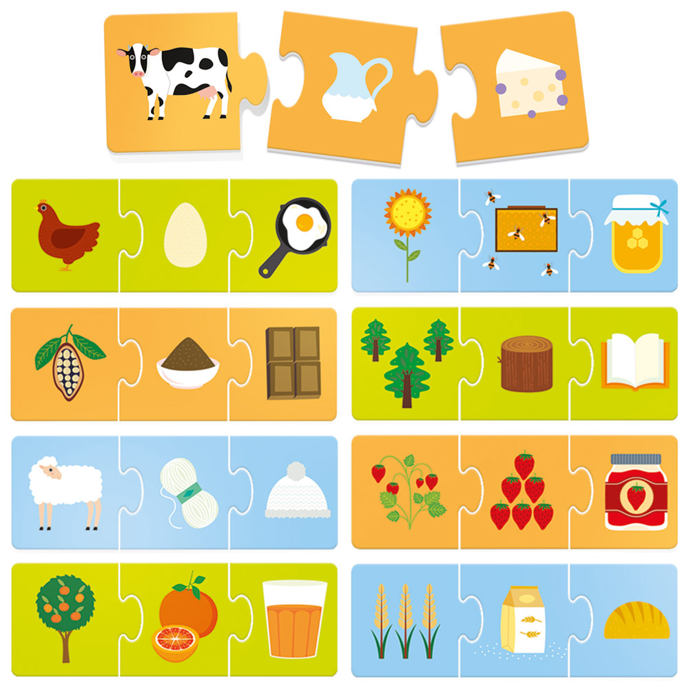 Kako nastaje čokolada? Ova originalna i zabavna igra podstiče radoznalost dece i pomaže im da razumeju jednostavne procese prerade i korišćenja namirnica. Igra pomaže u otkrivanju odakle dolaze stvari, razvijanju logičkog razmišljanja i radoznalosti